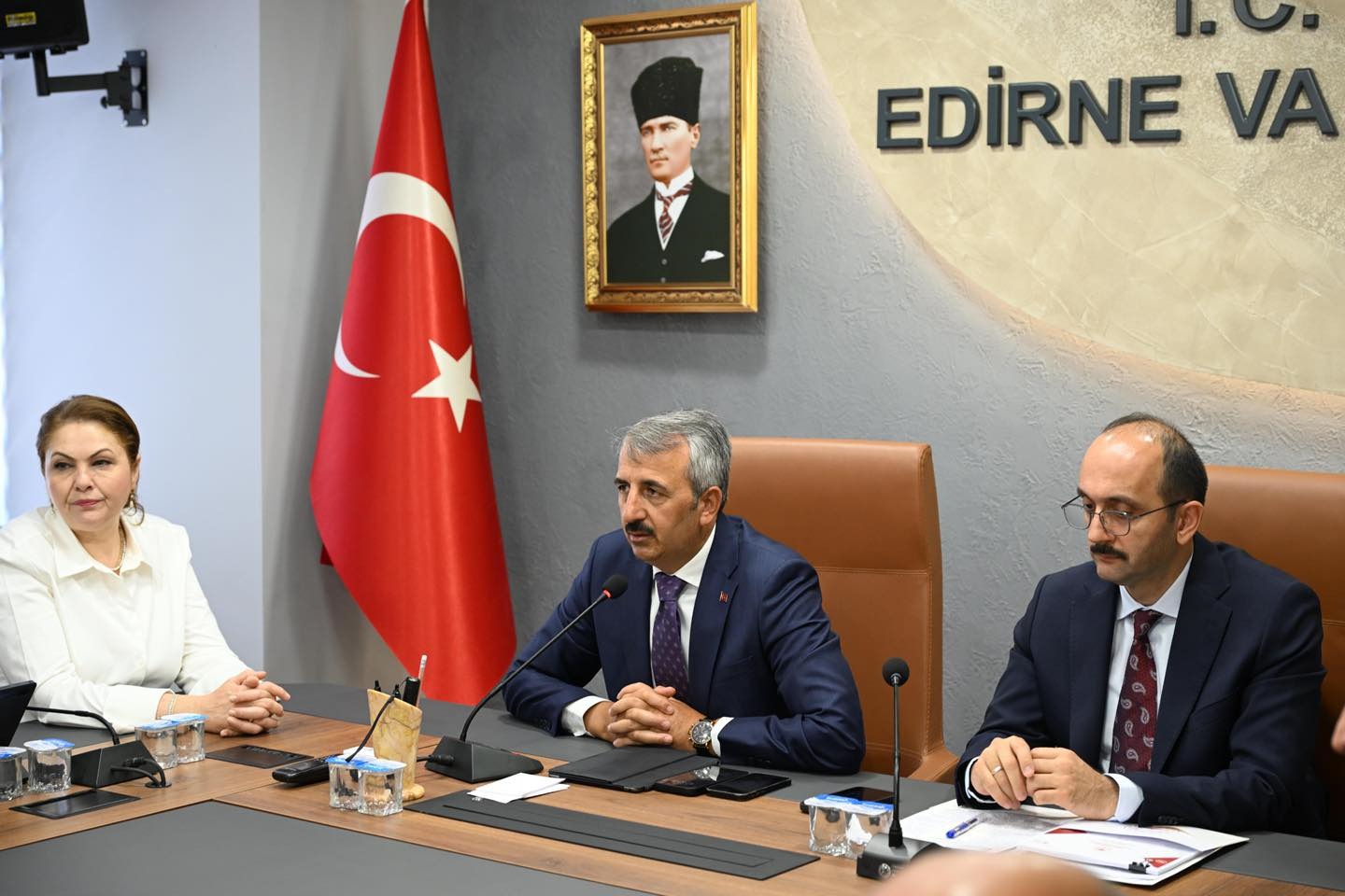Kuraklık nedeniyle Meriç ve Tunca Nehirlerinde yaşanan su sıkıntısına karşı, kentteki su kaynaklarının etkin ve verimli kullanımı amacıyla düzenlenen toplantıya; kaymakamlar, ilgili kurum müdürleri, üreticiler ve kooperatif yöneticileri de katıldı.