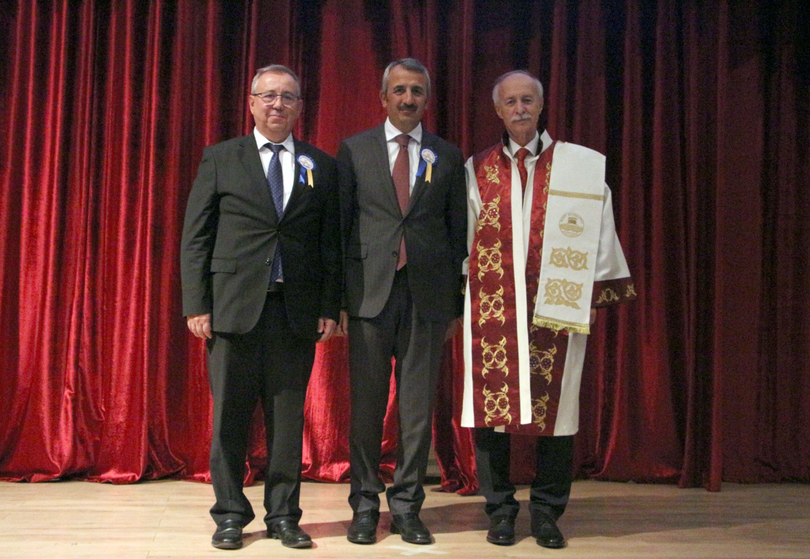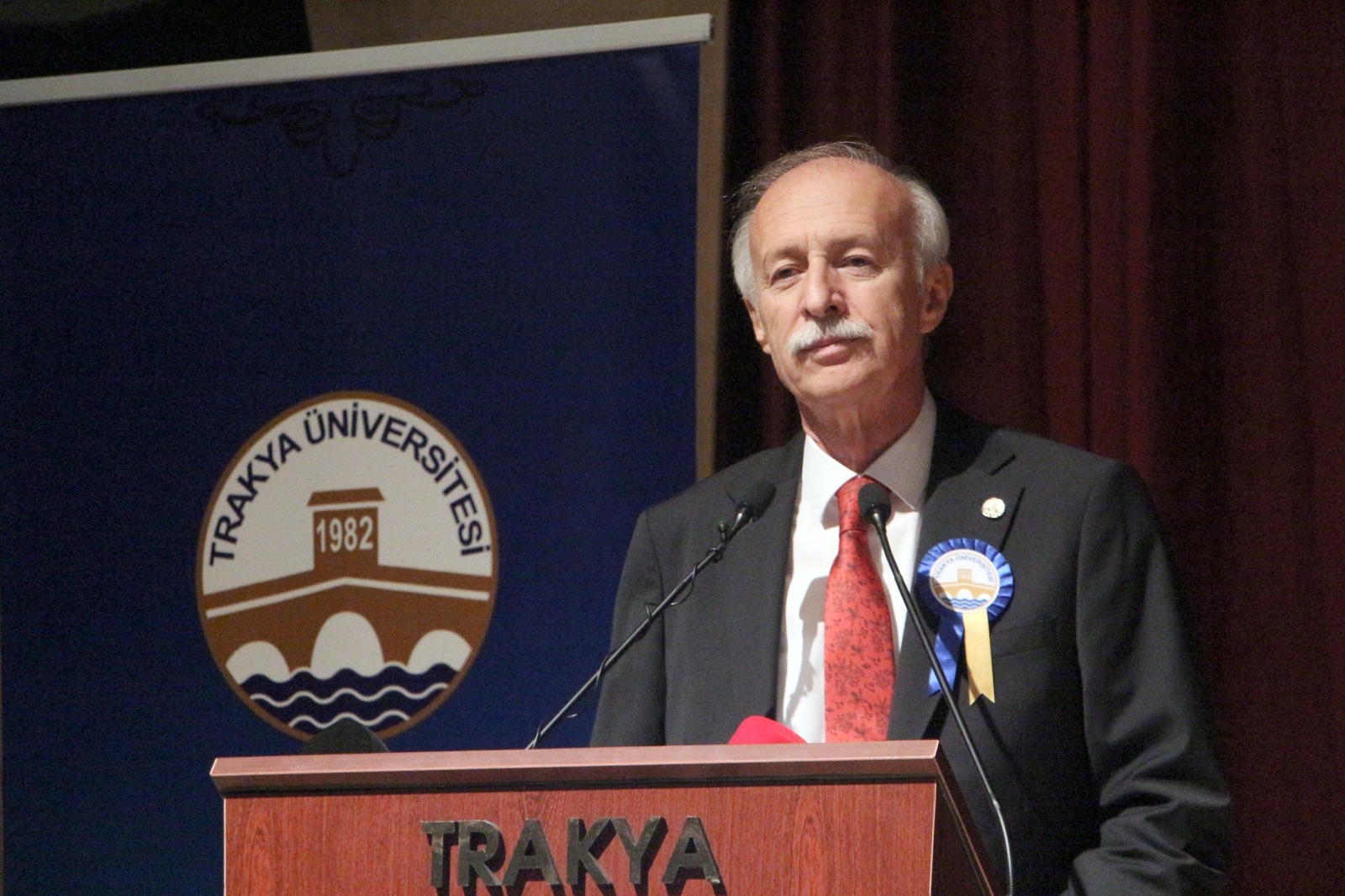 Görev süresi dolarak bayrağı Prof.Dr. Mustafa Hatipler’e devreden Prof.Dr. Erhan Tabakoğlu da, Trakya Üniversitesi’nde rektörlük yapmanın kendisine nasip olmasından dolayı büyük gurur yaşadığını anlattı. Tabakoğlu, “Burada sevdik, burada evlendik, her iki evladım da bu hastanede doğdu. Her ikisinin de göbek bağlarını buraya gömdüm. Dahili yoğun bakımı kurarken; ‘Bakın gidecek başka yerimiz yok, öyle bir yer yapacağız ki, en kıymetlilerimiz burada yatacak şekilde hizmet edeceğiz’ demiştik. Halam, amcam ve babam orada ebedi yolculuklarına uğurlandılar. Bu vazife bize nasip olunca dedik ki; ‘Bizim başka üniversitemiz yok, hastamıza yakışır bir hastane, evlatlarımıza yakışır bir üniversite için var gücümüzle çalışacağız.’ Cenab-ı Allah nasip etti, 8 yıl kendi memleketimde, kendi yetiştiğim üniversitede rektörlük nasip oldu. Bu görevi artık devrediyoruz. Çok eskiden beri hukukumuz olan değerli hocama devrediyoruz. Bir Edirneli, bir Balkanlı, Balkan sevdalısına devrediyoruz. Şehri şiirleriyle, kitaplarıyla en güzel şekilde anlatan birisi. Bunun çok önemli olduğunu düşünüyorum. Bu görevin kendisine çok yakışacağını düşünüyorum ve tebrik ediyorum” diye konuştu.