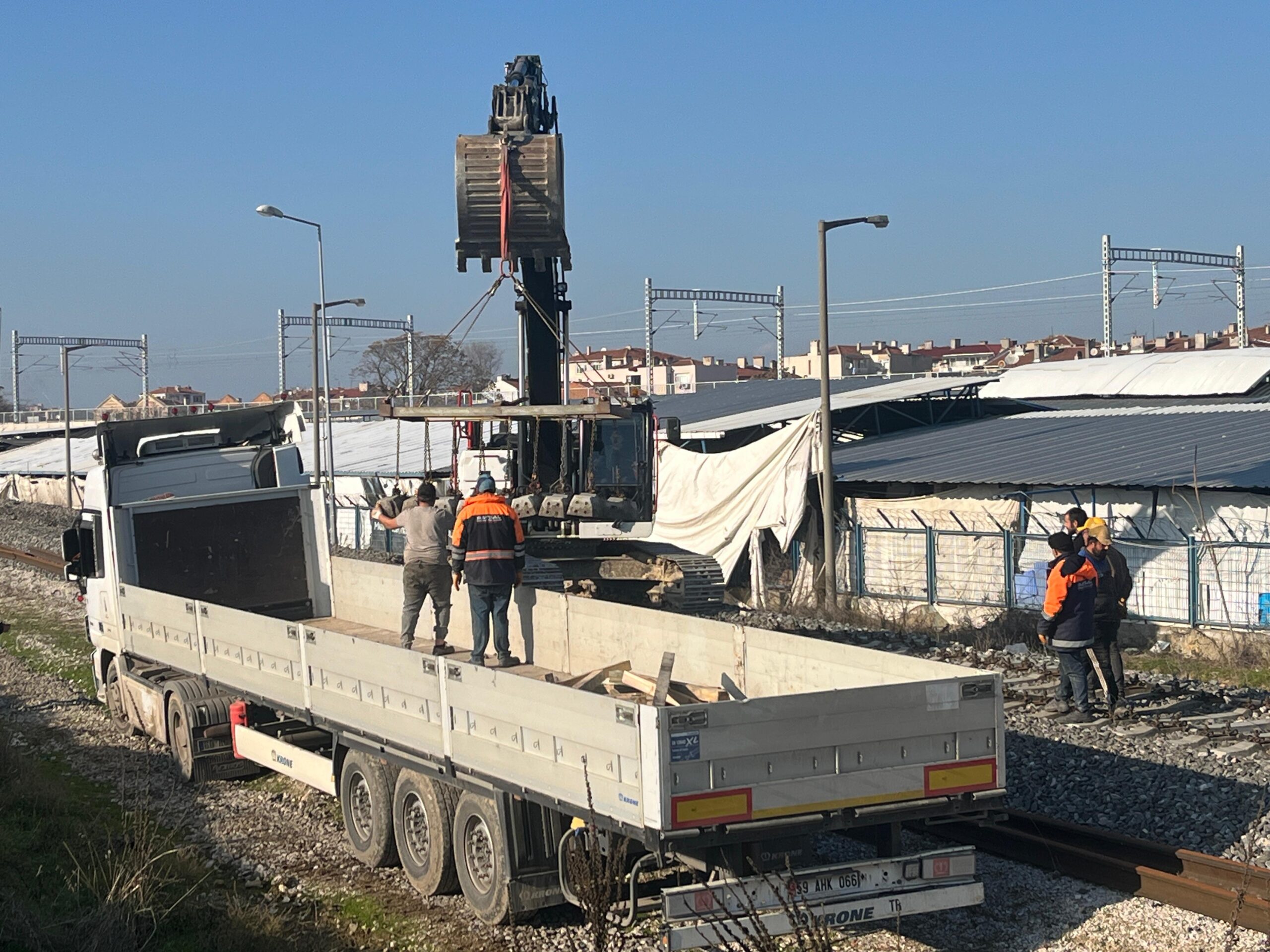 Edirne’de Halkalı-Kapıkule Hızlı Tren Projesi kapsamında, geçici demiryolu kurularak alternatif ulaşımın sağlandığı Tabakhane Caddesi üzerindeki raylar, inşaatta sona gelinmesiyle kaldırılmaya başlandı.