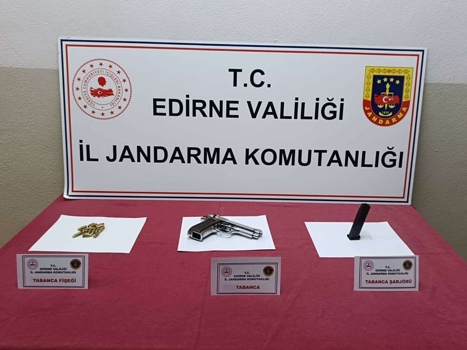 Havsa İlçesine bağlı Hasköy’de jandarma ekiplerince bir kişinin üzerinde yapılan aramada 1 adet ruhsatsız tabanca, 1 adet tabanca şarjörü, 15 adet tabanca fişeği, ele geçirilerek el konuldu.