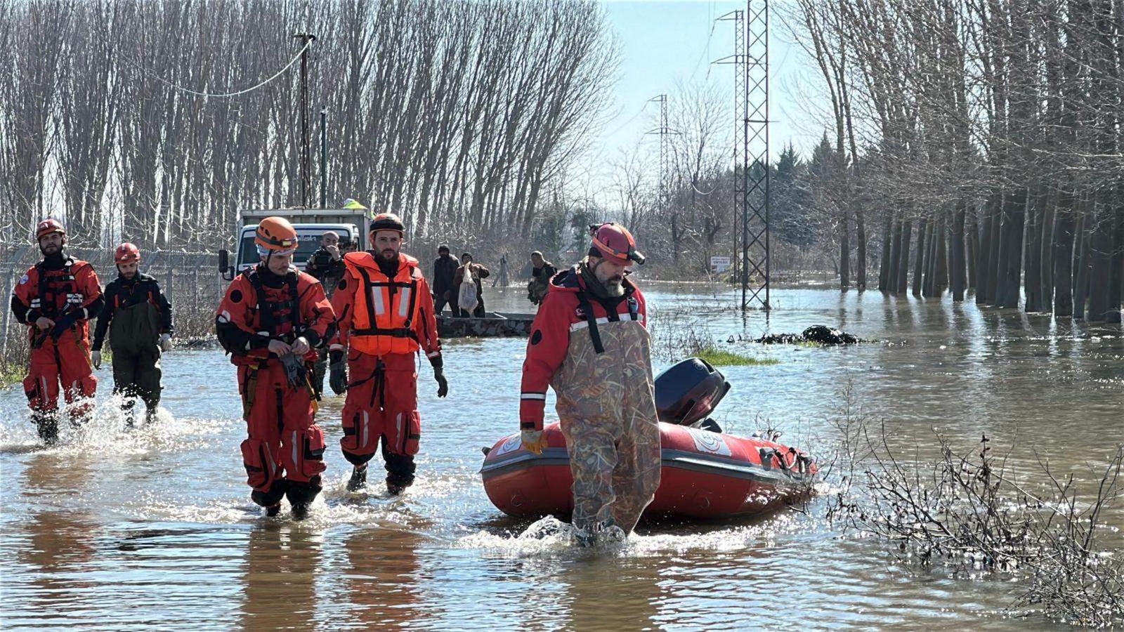 Edirne’de ‘kırmızı alarm’ verilen Meriç Nehri’nin taşması sonucu su, bölgedeki tarım arazileriyle bağ evlerini teslim aldı…AFAD ve Edirne Mahalle Afet Gönüllüleri (MAG-AME) ekipleri, gün boyu bölgede mahsur kalan köpekler ve çiftlik hayvanları kurtarmak için zamanla yarıştı…