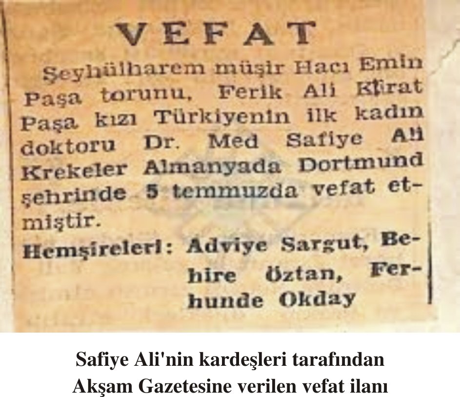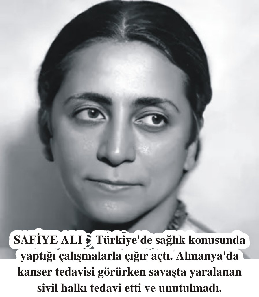 Türkiye’nin ilk kadın doktoru ve ilk kadın tıp hocası İstanbul’da 1891 yılında doğan Safiye Ali’dir. Dünyanın ilk kadın Doktoru olarak tıp tarihine geçen İngiliz Elizabeth Blackwell’dan (1821-1910) 70 yıl sonra dünyaya geldi.