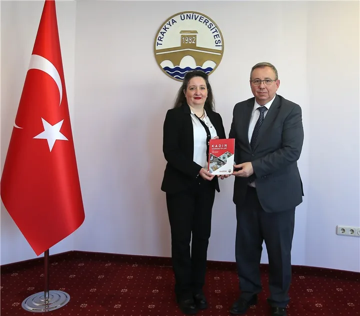 Trakya Üniversitesi Uzunköprü Uygulamalı Bilimler Yüksekokulu Öğretim Üyesi Doç. Dr. Nilüfer Serinlikli ve Uzm. Dr. Nilgün Tabakoğlu ile editörlüğünü üslendiği “Kadın Kooperatifleri” adlı kitabı Rektör Prof. Dr. Erhan Tabakoğlu’na takdim etti.