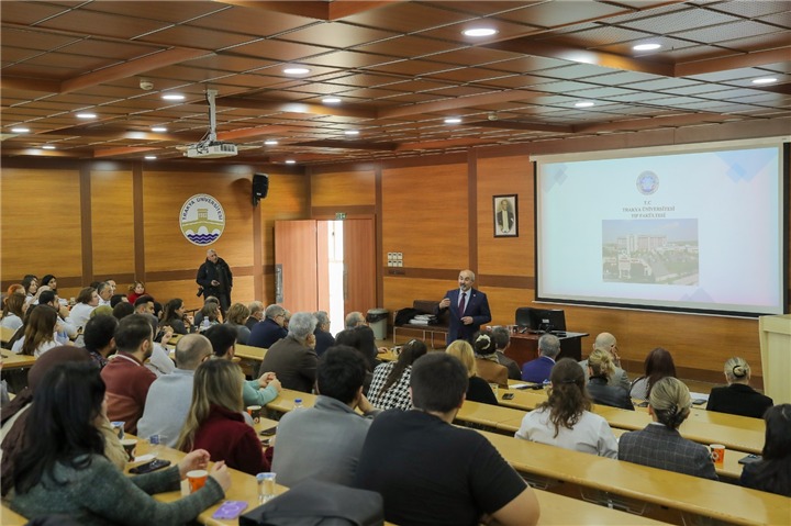 Akreditasyon belgesi takdiminin ardından TEPDAD Yönetim Kurulu Başkanı Prof. Dr. İskender Sayek “Tıp Eğitimi ve Sosyal Hesap Verebilirlik” konulu bir konferans verdi. Yükseköğretim kurumlarında akreditasyonun önemine değinen Prof. Dr. Sayek, Trakya Üniversitesi Tıp Fakültesinin böyle bir kalite belgesi almasından duyduğu memnuniyeti dile getirdi. Konuşmasında tıp eğitimine dair güncel yaklaşımlara dikkat çeken Sayek, 21. yüzyılda sağlık ve tıp eğitimi, tıp eğitiminde sosyal güvenlik kavramı, değerlendirme yöntemleri ve tıp eğitiminin akreditasyonla ilişkisi konularında da bilgiler verdi.