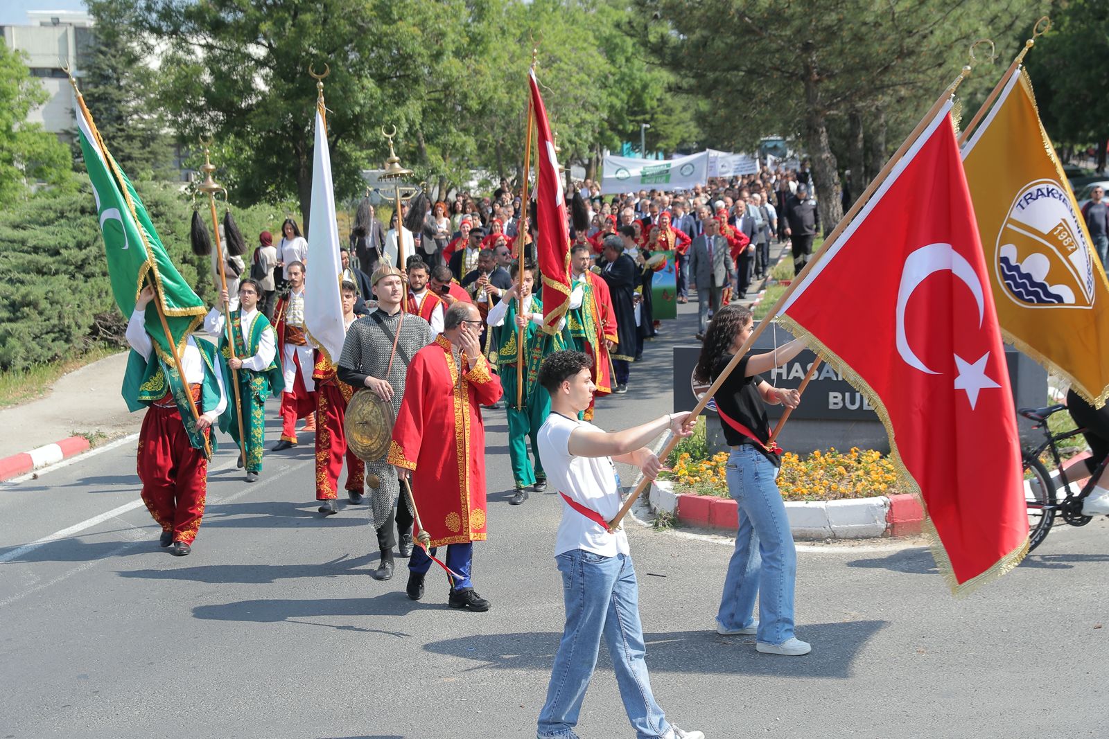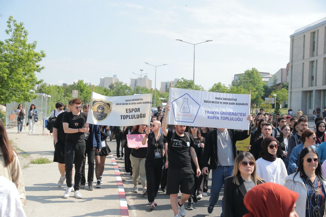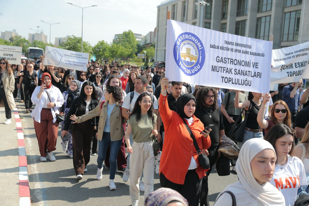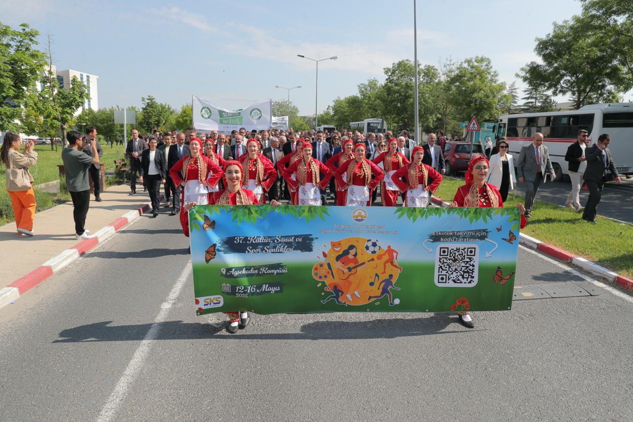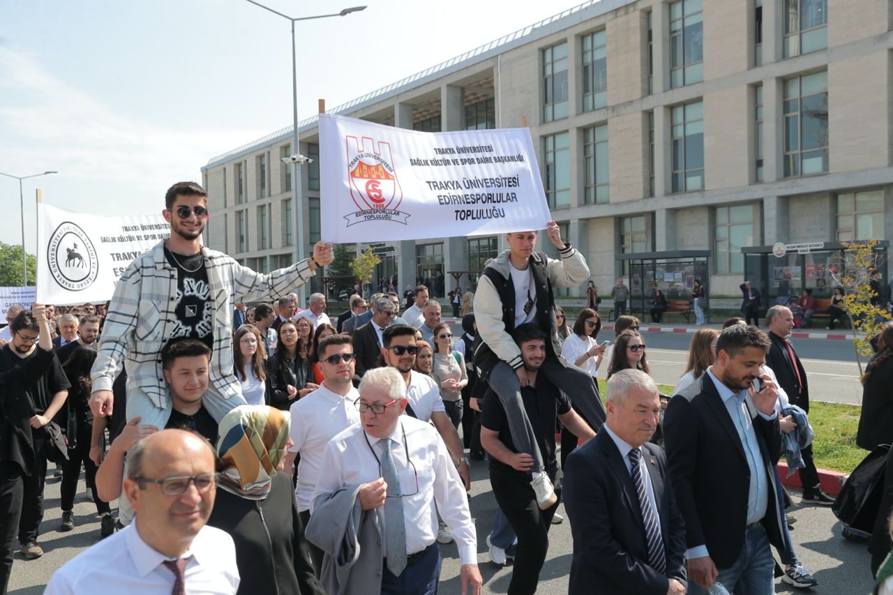 T.Ü.’nün geleneksel olarak düzenlediği bahar şenliklerinin açılışı, gerçekleştirilen kortej yürüyüşüyle başladı. Üniversite çalışanları, akademisyenler ve öğrencilerden oluşan kortej üniversitenin Balkan Yerleşkesi’ndeki Bolca Ana Yemekhanesi önünde toplanarak rektörlük binası önüne kadar yürüdü. Yürüyüşün ardından Balkan Kongre Merkezi önünde açılış töreni gerçekleştirildi. Törene Trakya Üniversitesi Rektörü Prof. Dr. Mustafa Hatipler, Edirne Vali Yardımcısı Sıdkı Zehin, Edirne Baro Başkanı Av. Gökhan Karakoç, Edirne Belediye Başkan Yardımcısı Cenk Ergüden, rektör yardımcıları, dekanlar, enstitü ve yüksekokul müdürleri, akademik ve idari personel ile çok sayıda öğrenci katıldı.