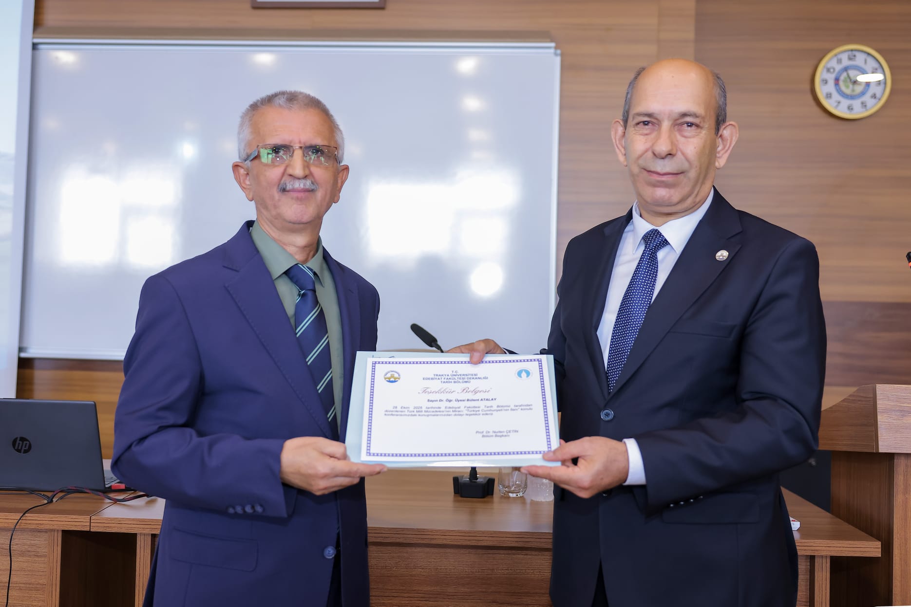 Etkinlik, katılımcıların sorularının yanıtlanmasının ardından sona erdi. Programın sonunda, Rektör Yardımcısı Prof. Dr. Mustafa Tan tarafından Dr. Öğr. Üyesi Bülent Atalay’a teşekkür belgesi takdim edildi.