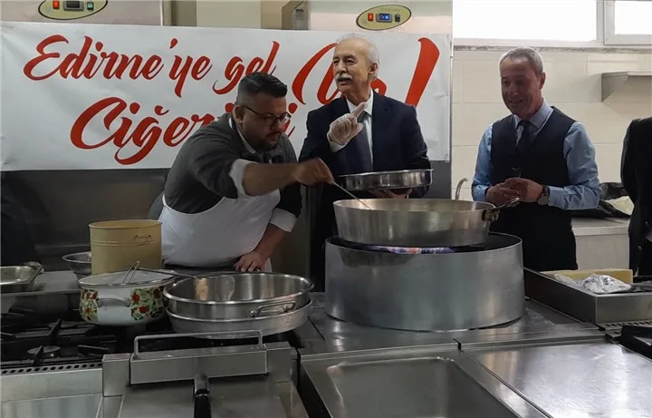 Trakya Üniversitesi Edirne Sosyal Bilimler Meslek Yüksekokulu (SBMYO), Edirne’nin meşhur tava ciğerini ustalar eşliğinde uygulama mutfağı ile buluşturdu. Turizm ve Otel İşletmeciliği Programı öğrencileri ile bir araya gelen Tarihi Ciğerci Bahri Bey’in işletmecisi Bahri Dinar ve tava ciğeri ustası Uğurcan İmrak, okulun uygulama mutfağında ciğer kesme ve pişirme dersi verdiler.