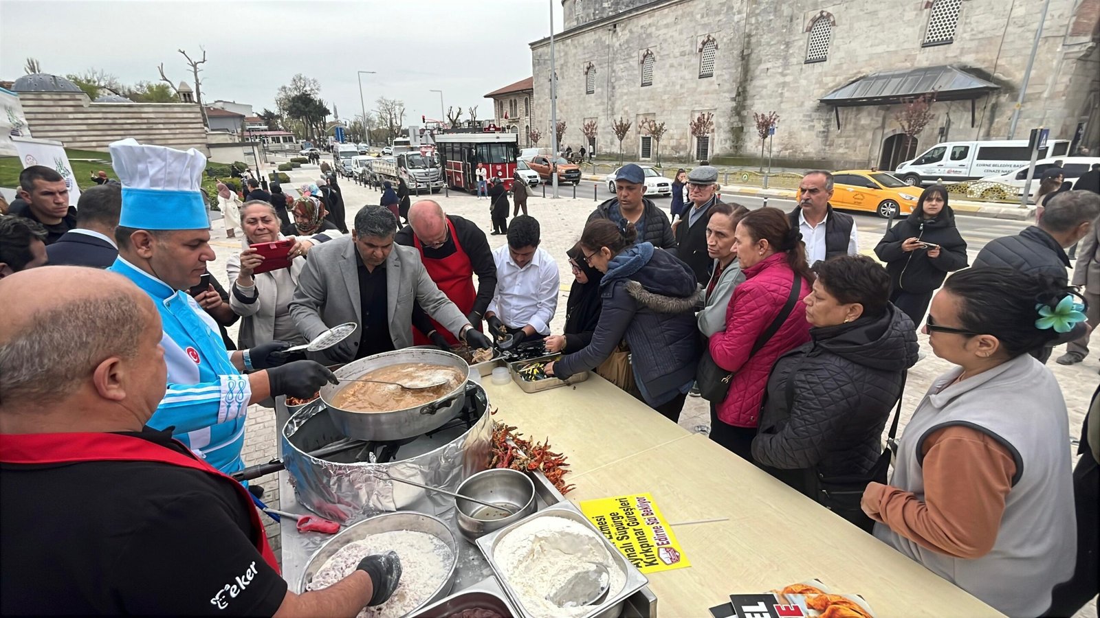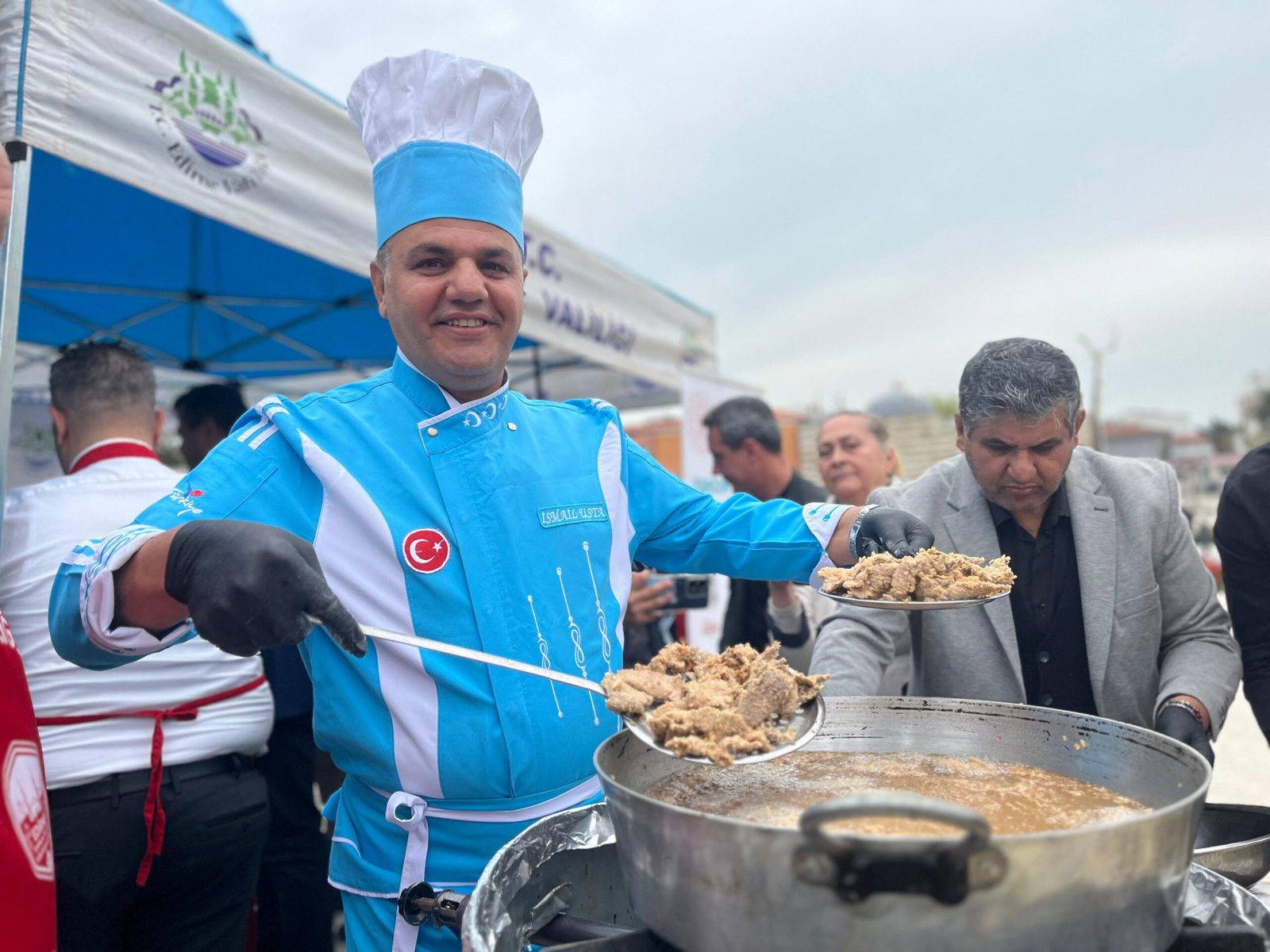 Etkinlikte Vali Sezer de, ciğerci önlüğü giyerek vatandaşlara tava ciğer dağıttı.