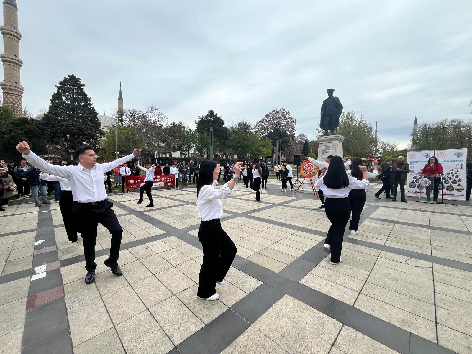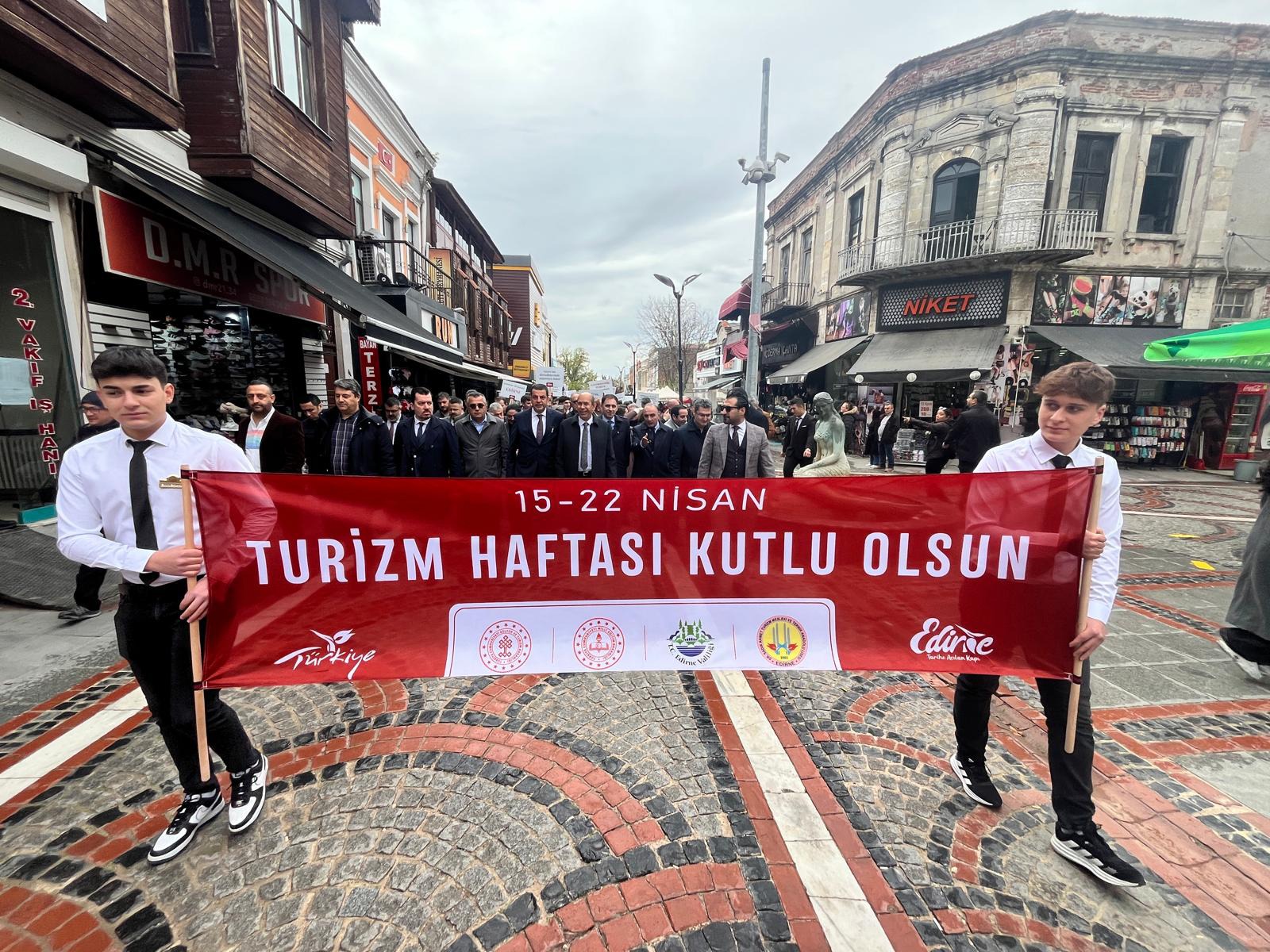 Edirne’de 49’uncu Turizm Haftası kortej yürüyüşü ve kent merkezindeki Atatürk Anıtı önünde düzenlenen törenle başladı.