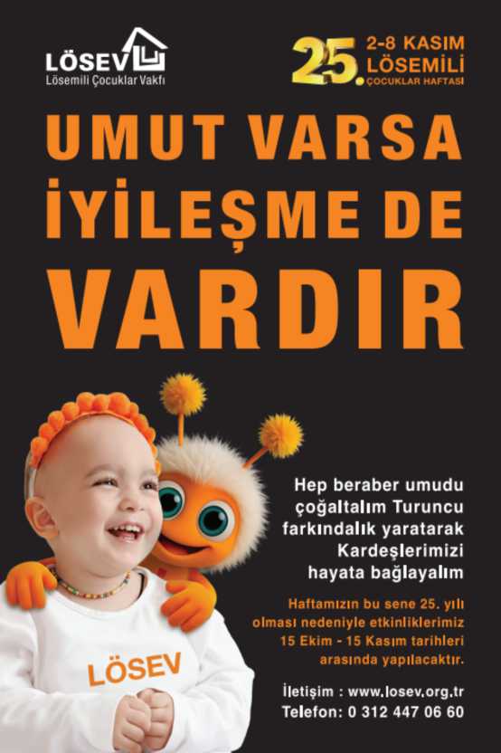 “LÖSEV, bu yıl ‘Umut Varsa İyileşme de Vardır’ sloganı ile tüm Türkiye’yi ‘turuncuya boyamaya’ çağırıyor. Siz de lösemiye dikkat çekmek ve lösemili çocukların yanında olduğunuzu göstermek için turuncu kıyafetler, aksesuarlar, okul ve kurumlarda oluşturacağı turuncu köşeler ile farkındalık yaratabilir, lösemili çocukların verdikleri mücadeleye destek olabilirsiniz.