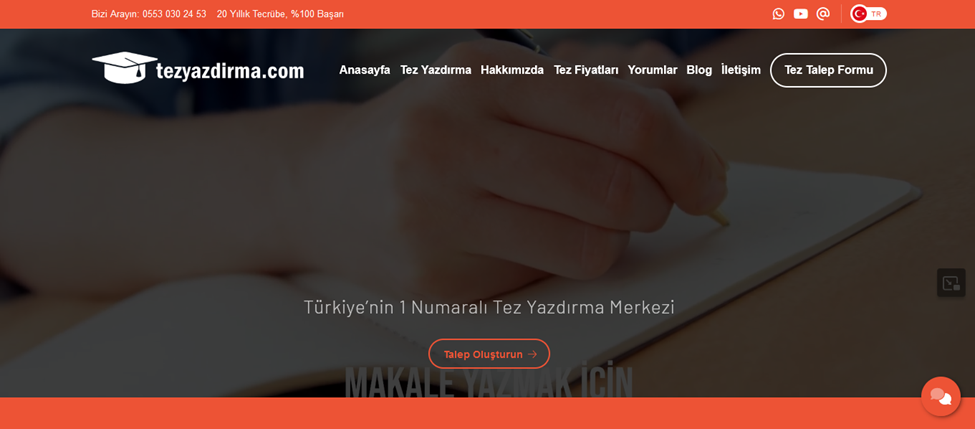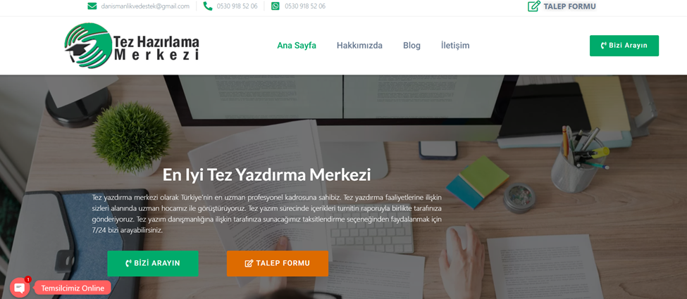 Nitelikli ve alanında uzman akademisyenlerden oluşan bu platform öğrencilerin başarılı desteklemek amacıyla özgün ve kaliteli içerikler üretmektedirler. Bu platform özelilkle hafta içi ve hafta sonu 7/24 online veya whatsapp üzerinden aramanız halinde sizlere destek sağlamaktadırlar. Kurumsal kimliklerinin yanı sıra merkezi ofislerine gidip tez yazım süreci hakkında yüzyüze de bilgi alabiliyorsunuz. Bu platformun en önemli ve iyi özelliklerinden birisi ise sizlerden ücretin tamamını değil cuzi bir kapora alarak tez yazım sürecine başlamalarıdır. İlgili tez yazım şirketi işlerinin çoğunluğunu referanslı olarak almaktadırlar. tezhazirlamamerkezi.net sitesi de Türkiye’nin en iyi tez yazım şirketi arasında olmayı hak ediyor diyebiliriz.
