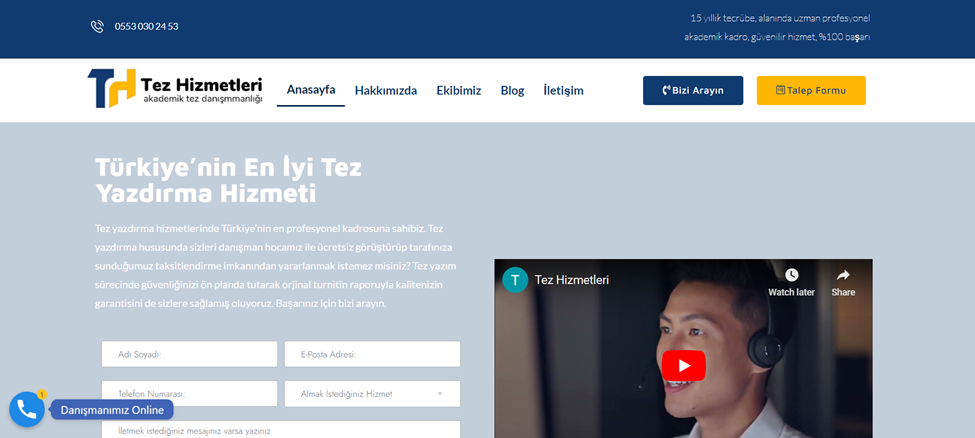 tez yazdırma hizmetinde Türkiye ve Uluslararası alanlarında faaliyet gösteren, kendini her geçen gün geliştiren tez yazım platformudur. Özgün Logo Tasarımı ile ön plana çıkan Tez Danışmanlık HizmetiTez Danışmanlık Hizmetleri Türkiye’de olduğu gibi yurtdışı Almanca ve İngilizce siteleri üzerinden Türkiye dışında da önemli çalışmalar ortaya koymaktadır. İlgili tez yazım sitesi gerek kredi kartına taksit imkanı gerek ise taksitli ödeme seçenek sayısını artırması nedeniyle öğrencilere mali açıdan rahatlaması yönünde yardımcı olmaktadır. Alanında uzman hoca ile ücret almamaları nedeniyle görüşme fırsatı sağlamaktadırlar.