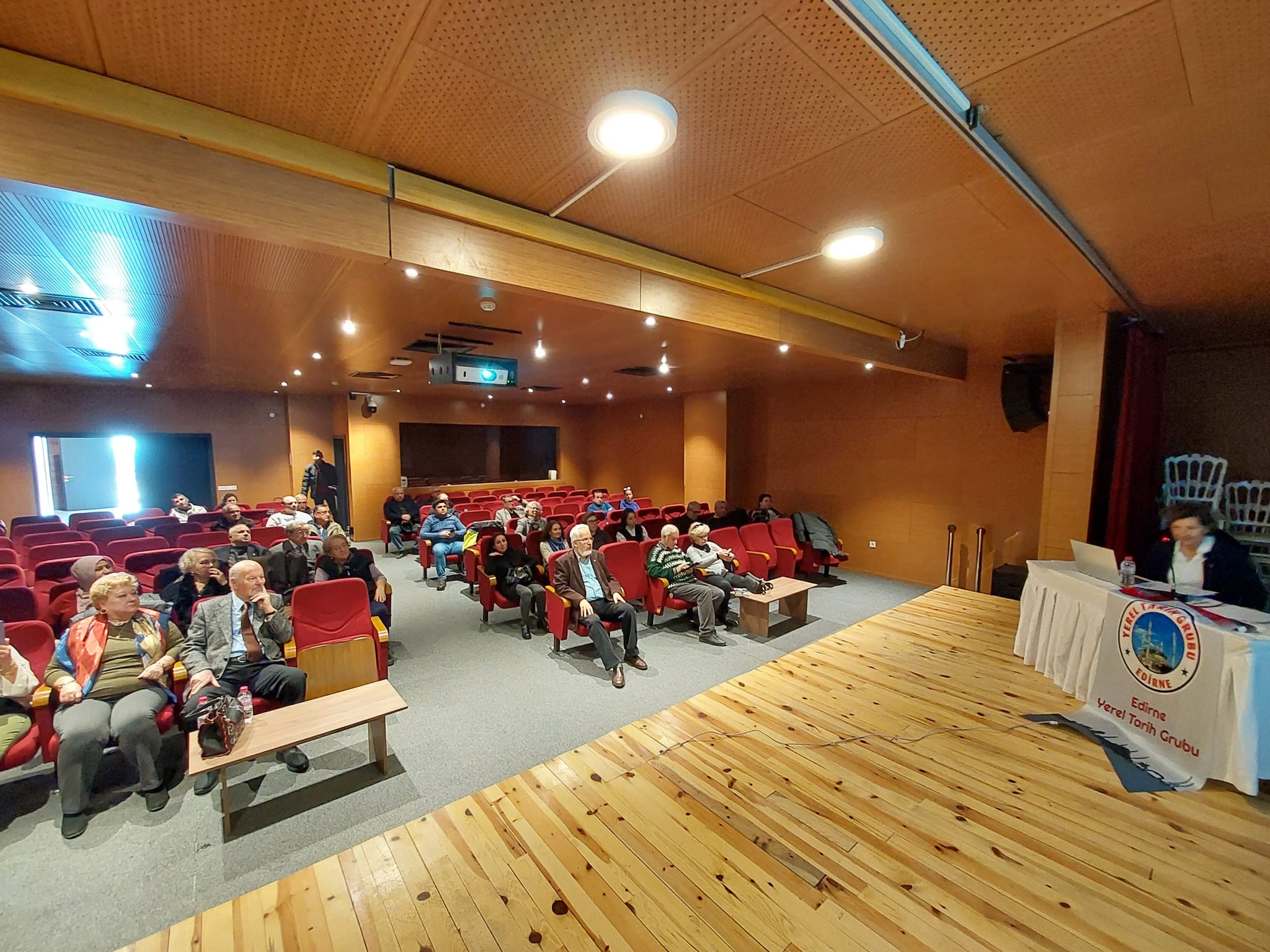 Edirne Yerel Tarih Grubu Atatürk Kültür Merkezi’ndeki gerçekleştirilen buluşmasındaki sunumda Zuhal Buktel hoca konuklarına Edirne ve 100 yıl öncesinden ilginç bilgiler sundu.