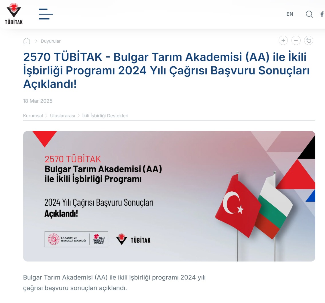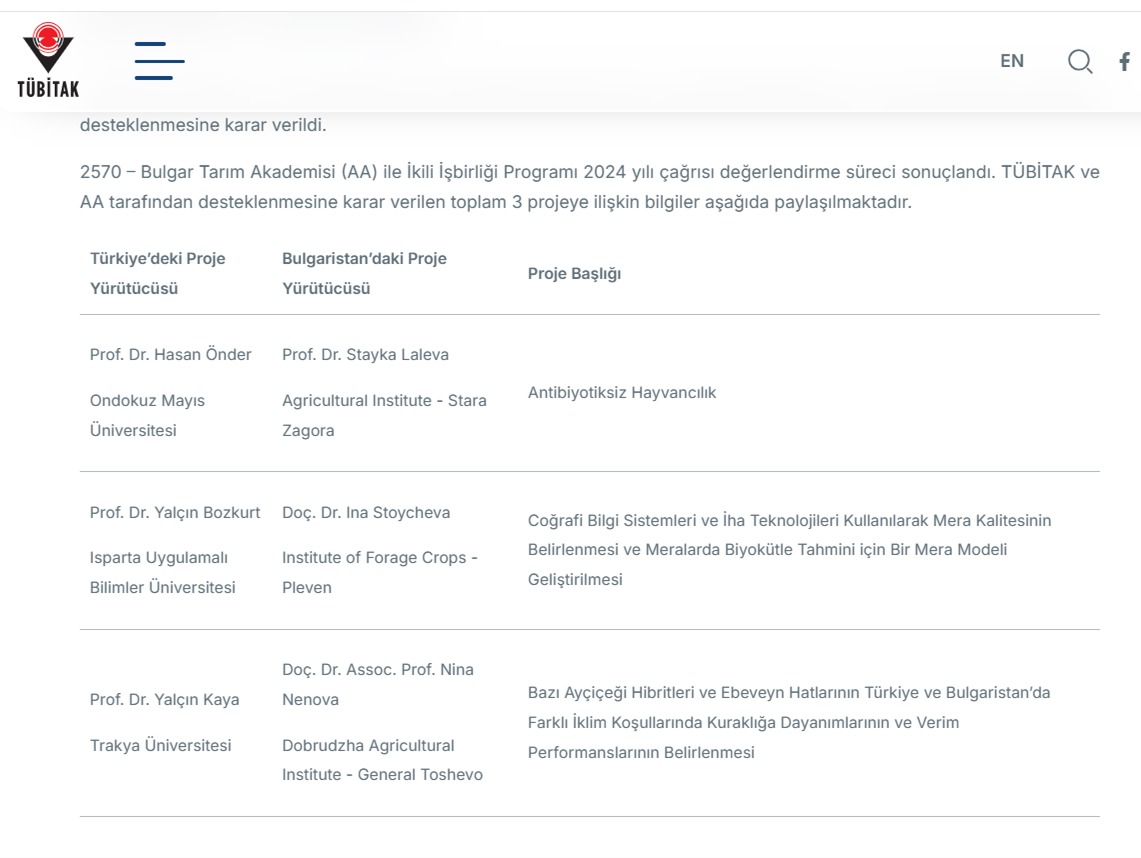TÜBİTAK ve Bulgar Tarım Akademisi (AA) tarafından açılan “2570 İkili İşbirliği Programı 2024 Yılı Çağrısı” kapsamında desteklenen 3 ortak uluslararası projeden biri Trakya Üniversitesi’nin oldu.