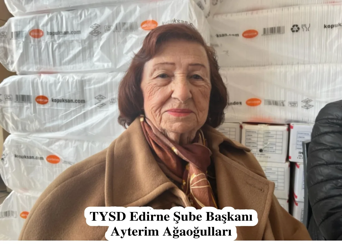 TYSD Edirne Şube Başkanı Ayterim Ağaoğulları, Edirneli hayırseverler sayesinde yardımlarını sürdürdüklerini söyledi.