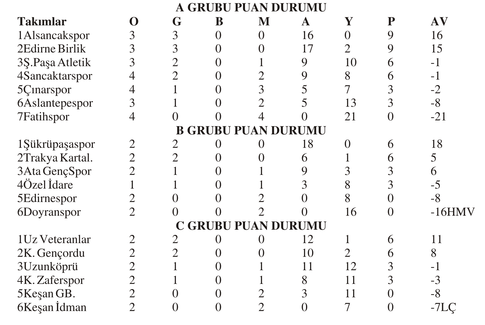 Ata Genç 1-3 Trakya Kartalları Doyran 0-3 Özel İdare