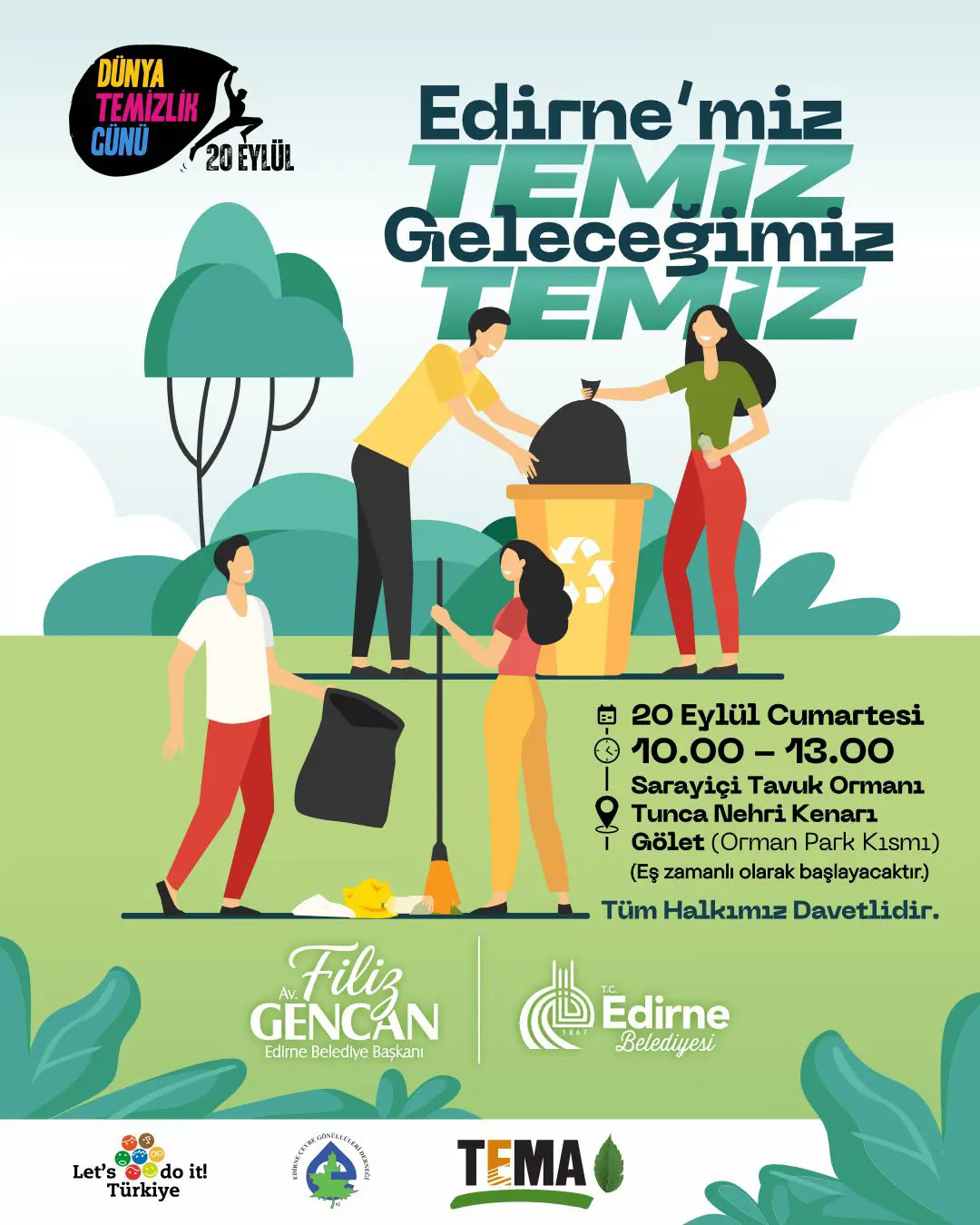 Edirne Belediyesi, 20 Eylül Dünya Temizlik Günü kapsamında çevre bilincini artırmak ve temiz bir gelecek için farkındalık oluşturmak amacıyla etkinlik düzenleyecek.