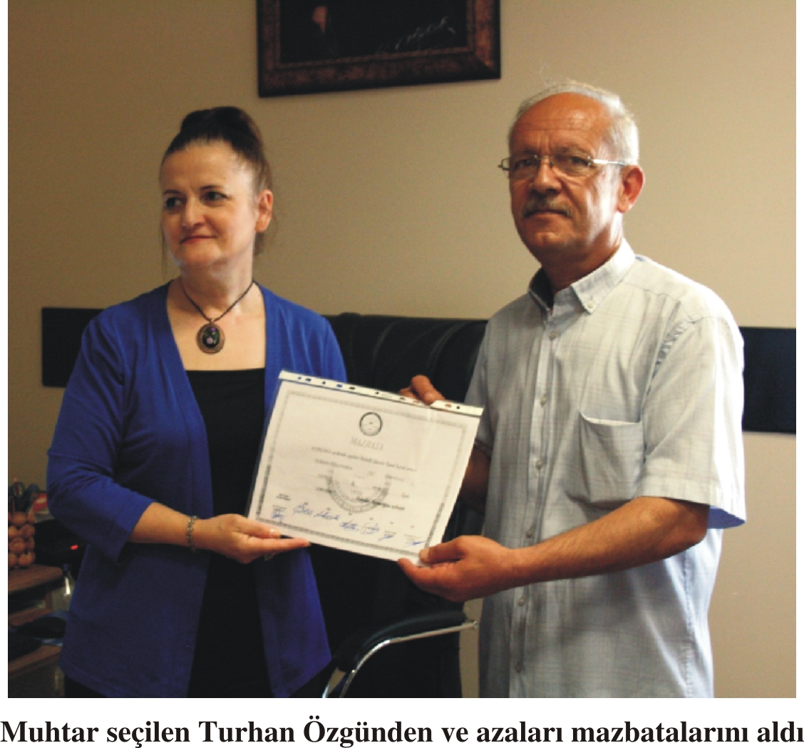 Edirne’de 2 Haziran’da Merkez İlçe Seçim Kurulu kararıyla muhtarlık seçiminin yinelendiği Umurbey Ma-hallesi’nde, yeniden muhtar seçilen Turhan Özgünden ve azaları, Merkez İlçe Seçim Kurulu’ndan mazbatalarını alarak göreve başladı.