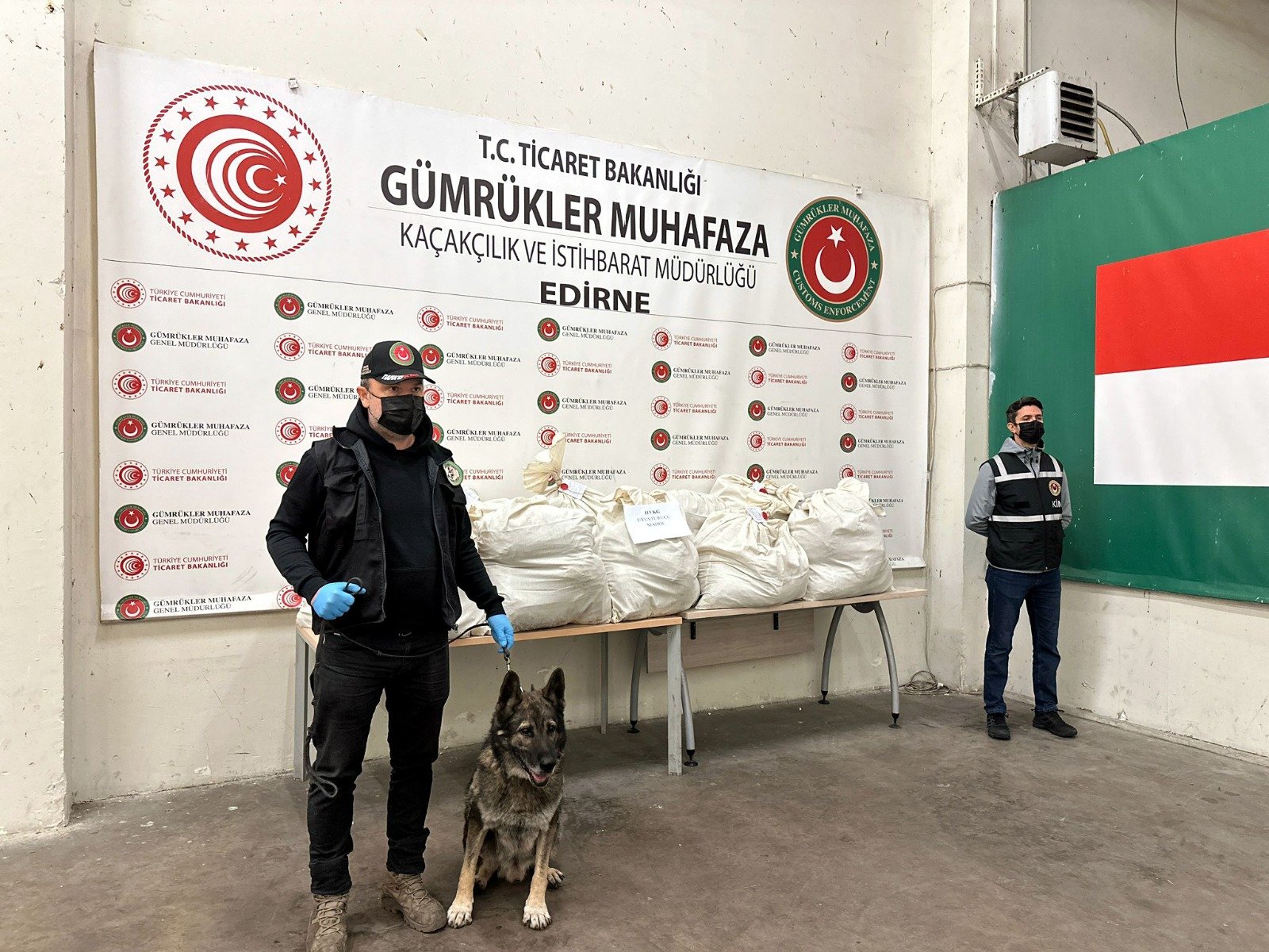 Edirne’de Bulgaristan’a açılan Kapıkule Sınır Kapısı’nda yurda giriş yapmak üzere gelen TIR’ın dorsesinde narkotik köpeği ‘Uzay’ ile yapılan aramada çuvallar içerisinde 113 kilo 664 gram esrar ele geçirildi, 1 şüpheli gözaltına alındı.