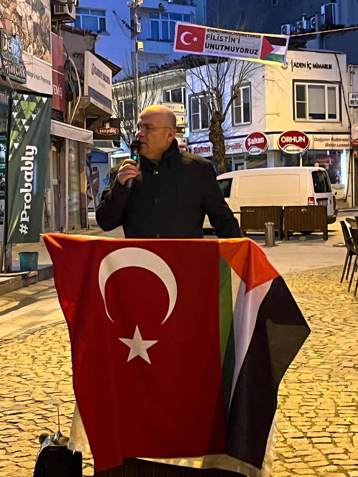 Burada konuşan ilçe kaymakamı Köken, Filistin’deki zulüm bir gün biteceğini söyleyerek, “İnşallah bu zulüm bir gün bitecek. Doğmamış çocukların, büyüyememiş çocukların memleketi Filistin özgürlüğüne kavuşacaktır. Buna inancımız tamdır. Türkiye Cumhuriyet Devleti, bu konuda elinden gelenin fazlasını yürütmektedir. Öz ve öz Müslüman memleketinde kan dökenlerden Allah ıslah etsin. Islahı mümkün değilse de Allah kahrı perişan etsin” dedi.