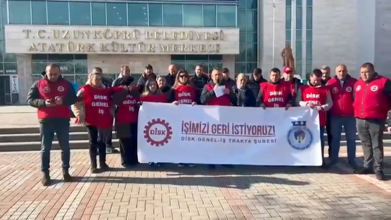 Edirne’nin Uzunköprü ilçesinde belediyenin işten çıkardığı, DİSK’e bağlı Genel-İş Sendikası üyesi 14 işçi, Uzunköprü Belediyesi Atatürk Kültür Merkezi önünde aileleriyle birlikte oturma eylemi başlattı.