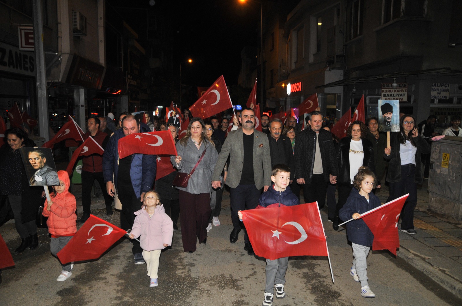 Akşam saatlerinde düzenlenen geleneksel Fener Alayı ise halkın yoğun katılımıyla gerçekleşti. Atatürk ve Cumhuriyet değerlerine bağlılığın simgesi olan yürüyüşte, kent adeta tek yürek oldu.