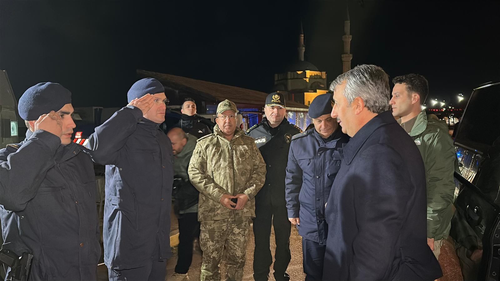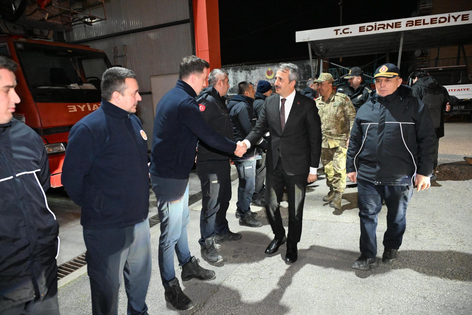 Edirne Valisi Yunus Sezer, kentte 2026 yılına görevi başında giren sağlık personeli ve kolluk kuvveti çalışanlarını ziyaret ederek, yeni yıllarını kutladı.