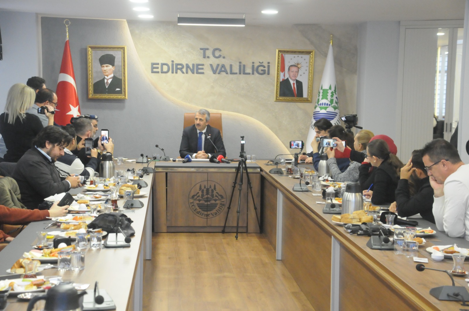 Edirne Valisi Yunus Sezer, 2025 yılına yönelik gerçekleştirdiği değerlendirme toplantısında, kentte devam eden projelere yönelik bilgi verirken, “Dolayısıyla stratejik açıdan çok değerli ve önemli bir il. Bir Türkiye yüzyılı var, bir de Edirne yüzyılı olması lazım. Edirne’nin bu gelecek yüzyılda gerçekten parlayan bir il olması için herkesin iyi çalışması lazım ve çalışırken de belli stratejilerle çalışmak lazım” dedi.