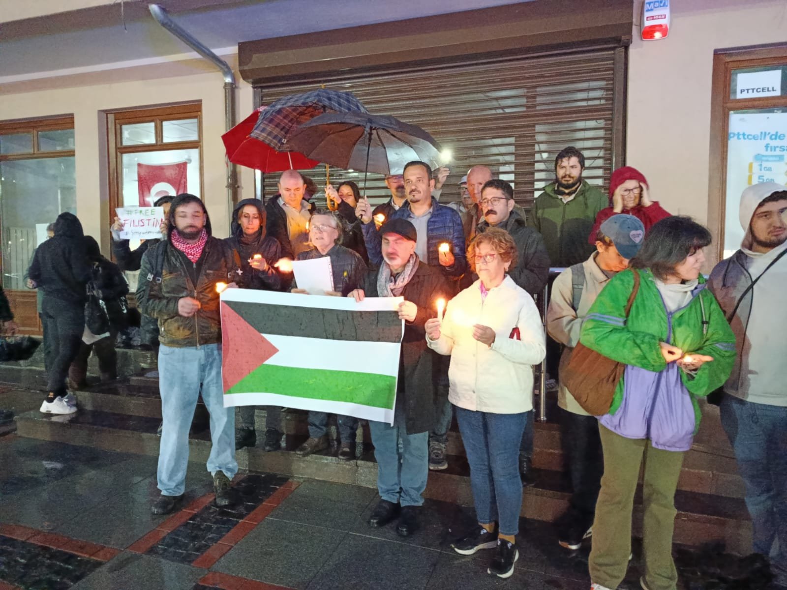 Edirne Çocuk Hakları Derneği, İsrail’in Gazze’deki sivillere yönelik saldırıları ve küresel Sumud Filosu’na destek amacıyla, yağmur altında ellerinde mumlarla basın açıklaması gerçekleştirdi.