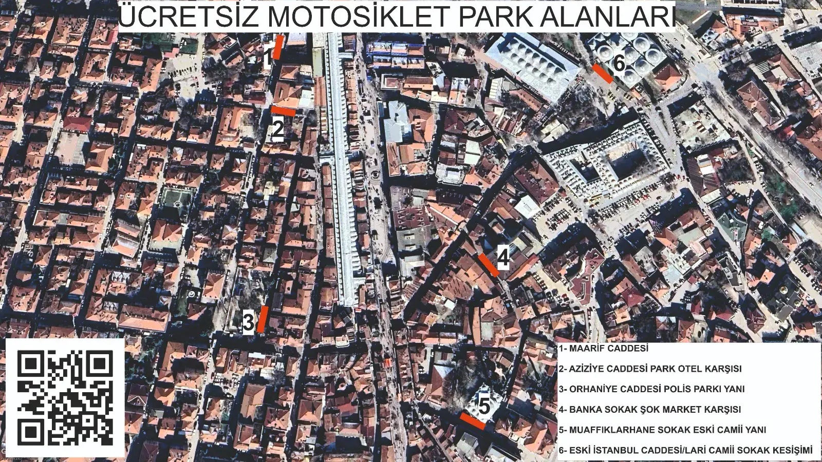 Yetkililer, trafiğe kapalı alanlara motorlu araçlarla girilmemesi konusunda uyarıda bulunurken, kent merkezinde ücretsiz motosiklet park yerleri şu şekilde olduğunu belirtti: