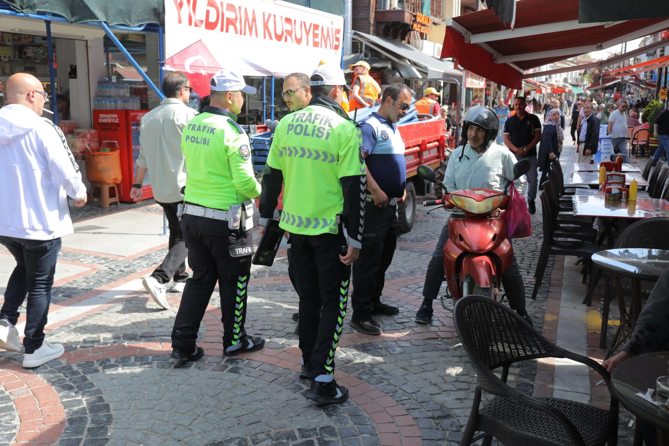 Yaya güvenliğini tehlikeye atan motosiklet ve elektrikli bisiklet sürücülerine yönelik yapılan kontrollerde 2 araç trafikten men edilirken, 10 araca da cezai işlem uygulandı.
