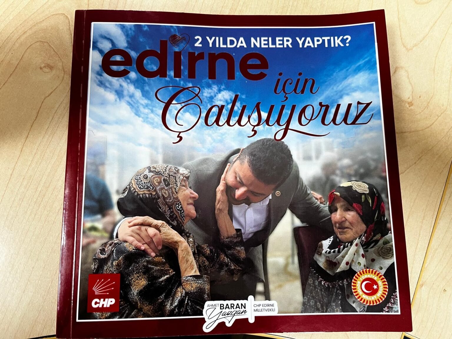 CHP Edirne Milletvekili Ahmet Baran Yazgan, 14 Mayıs 2023’te gerçekleştirilen genel seçimlerin üstünden geçen 2 yılda, Edirne ve Türkiye gündemine dair yaptığı çalışmaların kronolojik olarak anlatıldığı ‘Edirne İçin Çalışıyoruz’ isimli 250 sayfalık kitap hazırlamıştı.