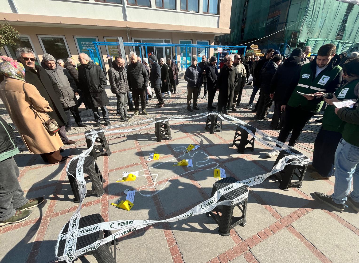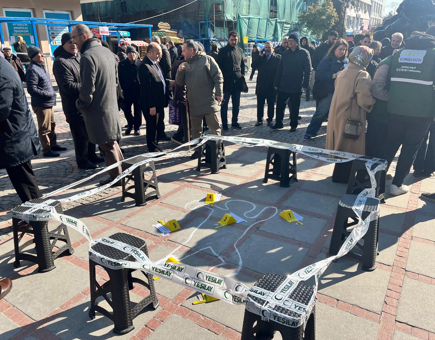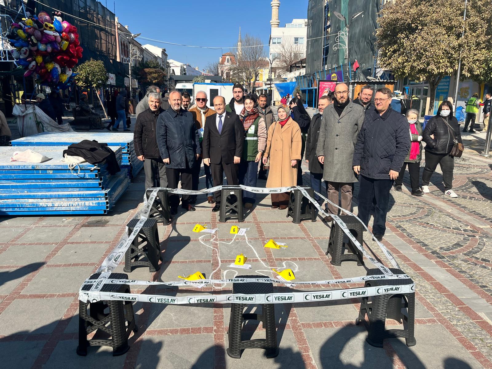 Yeşilay Edirne Şubesi tarafından 9 Şubat Sigarayı Bırakma Günü kapsamında gerçekleştirilen etkinlikte, sigaranın ölüme kadar götürebildiğine dikkat çekmek amacıyla, temsili olay yeri sahnesi oluşturuldu.