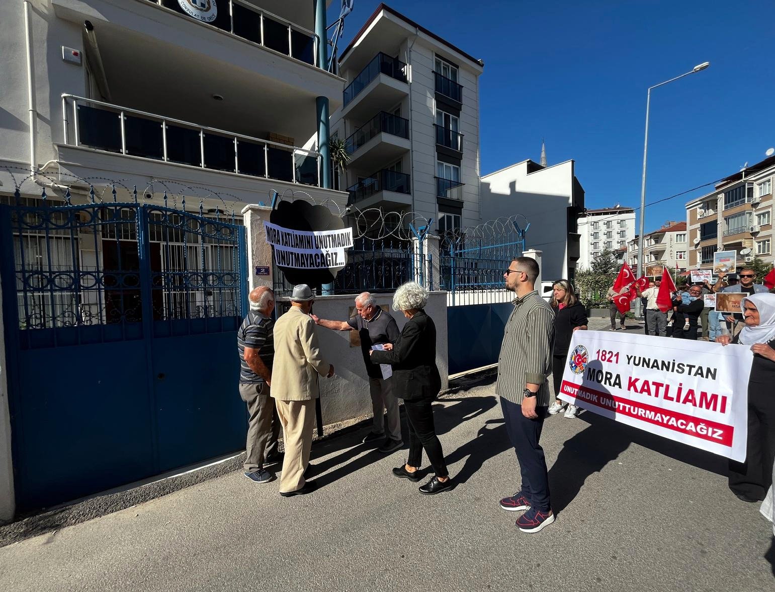 Konfederasyona bağlı sivil toplum kuruluşu üyeleri, Şükrüpaşa Mahallesi’nde bulunan Yunanistan Konsolosluğu’na gelerek, yaklaşık 204 yıl önce Yunanistan’da zulüm gören ve Mora Yarımadası’nın Tripoliçe kentinde katledilen 40 bin Türk için konsolosluğa siyah çelenk bıraktı. Etkinlikte basın açıklamasını Babaeski Balkan Türkleri Dayanışma Derneği Başkanı Gülsüm Kaynaklar okudu.