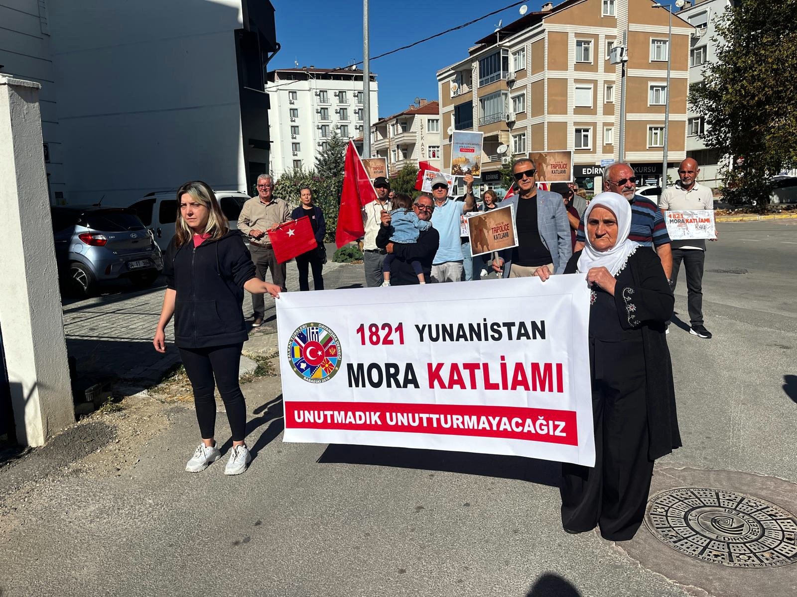 Edirne’de Balkan Rumeli Türkleri Konfederasyonu’na bağlı sivil toplum kuruluşları tarafından, Mora Yarımadası'nda 1821 yılında Batı Trakya Türkleri’ne yönelik gerçekleştirilen katliam anılarak, Yunanistan Edirne Konsolosluğu önüne siyah çelenk bırakıldı…