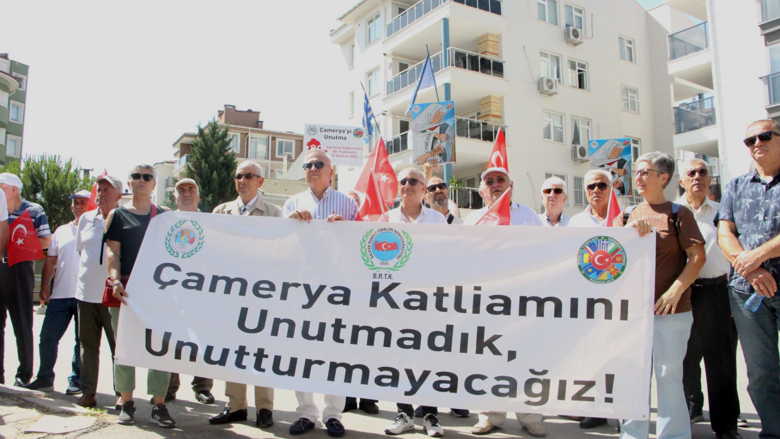 Yunanistan’ın kuzey batısında 1944-1945 yılları arasında binlerce Arnavut Müslüman’ın ölümüyle sonuçlanan Çamerya Katliamı’nın yıldönümü dolayısıyla, Yunanistan Edirne Konsolosluğu önünde eylem düzenlendi. Balkan Rumeli Türkleri Konfederasyonu tarafından düzenlenen eyleme katılanlar, ellerindeki siyah çelengi, konsolosluk önüne bıraktı.