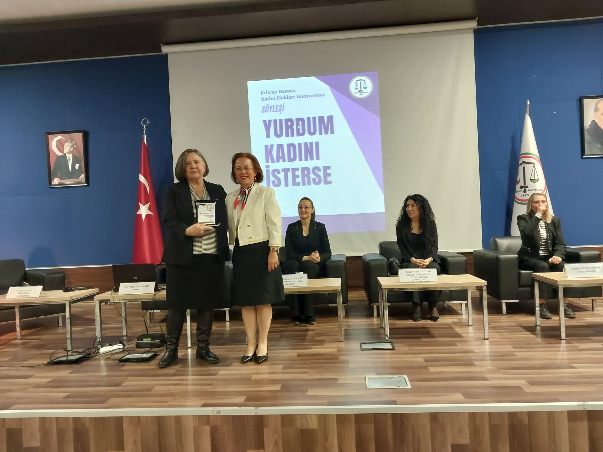 Sunumun bitiminde konuşmacılara Edirne Barosu tarafından teşekkür edildi ve katılım belgesi verildi.