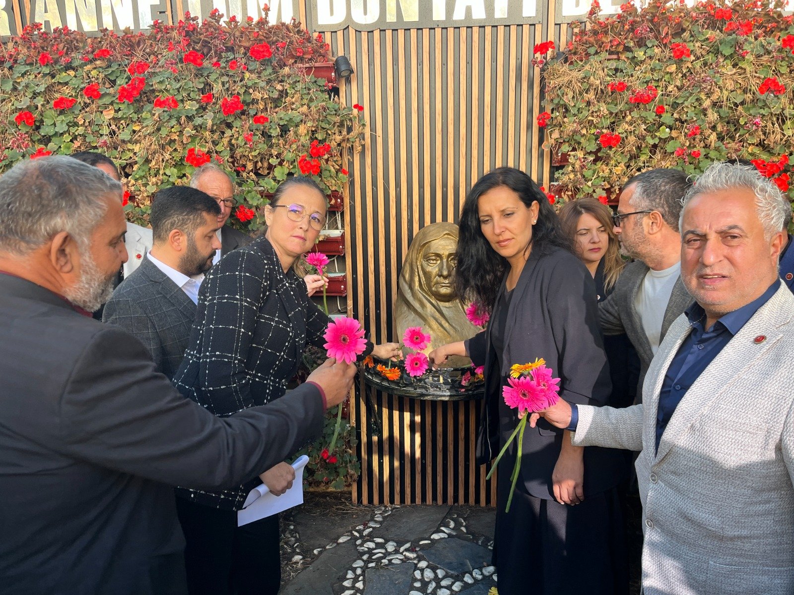 Konuşmaların ardından, açıklamaya katılan muhtarlar Zübeyde Hanım büstüne çiçek bıraktı.