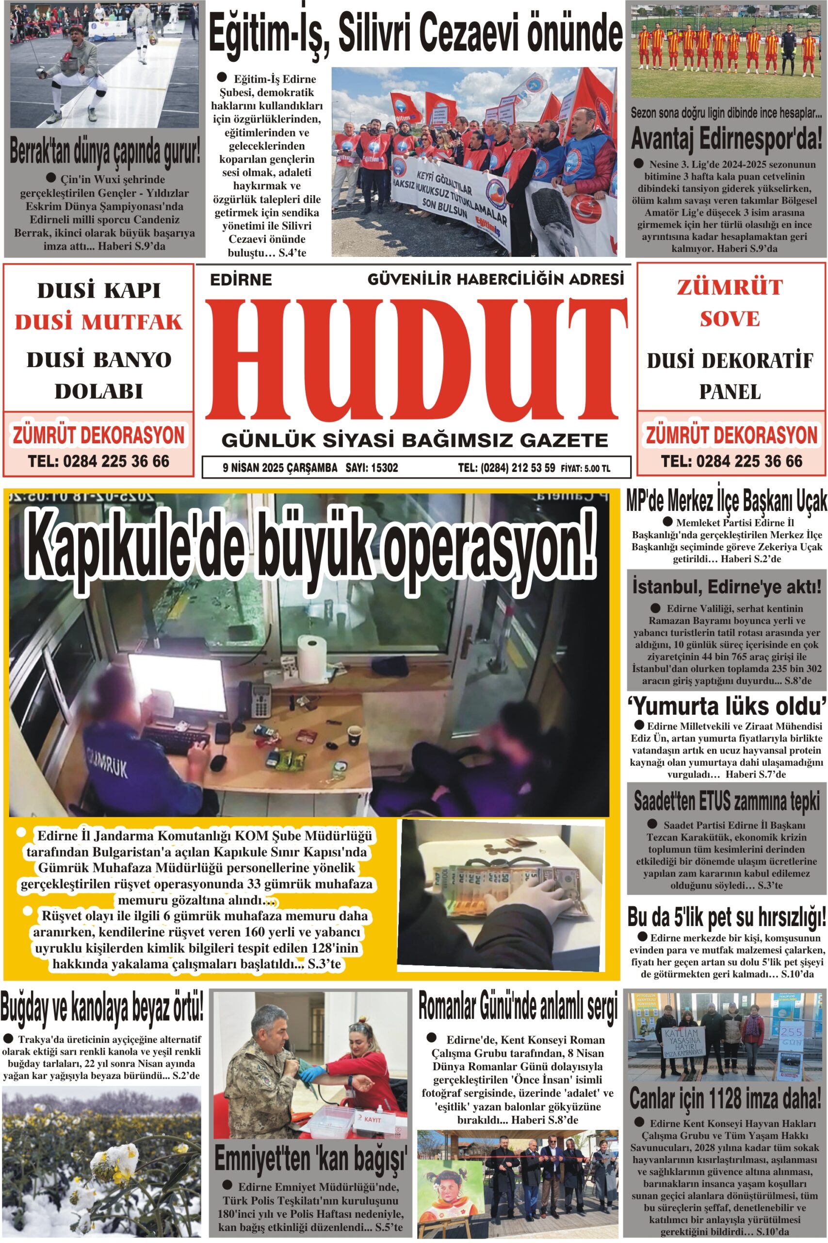 9 Nisan 2025 Çarşamba Hudut Gazetesi