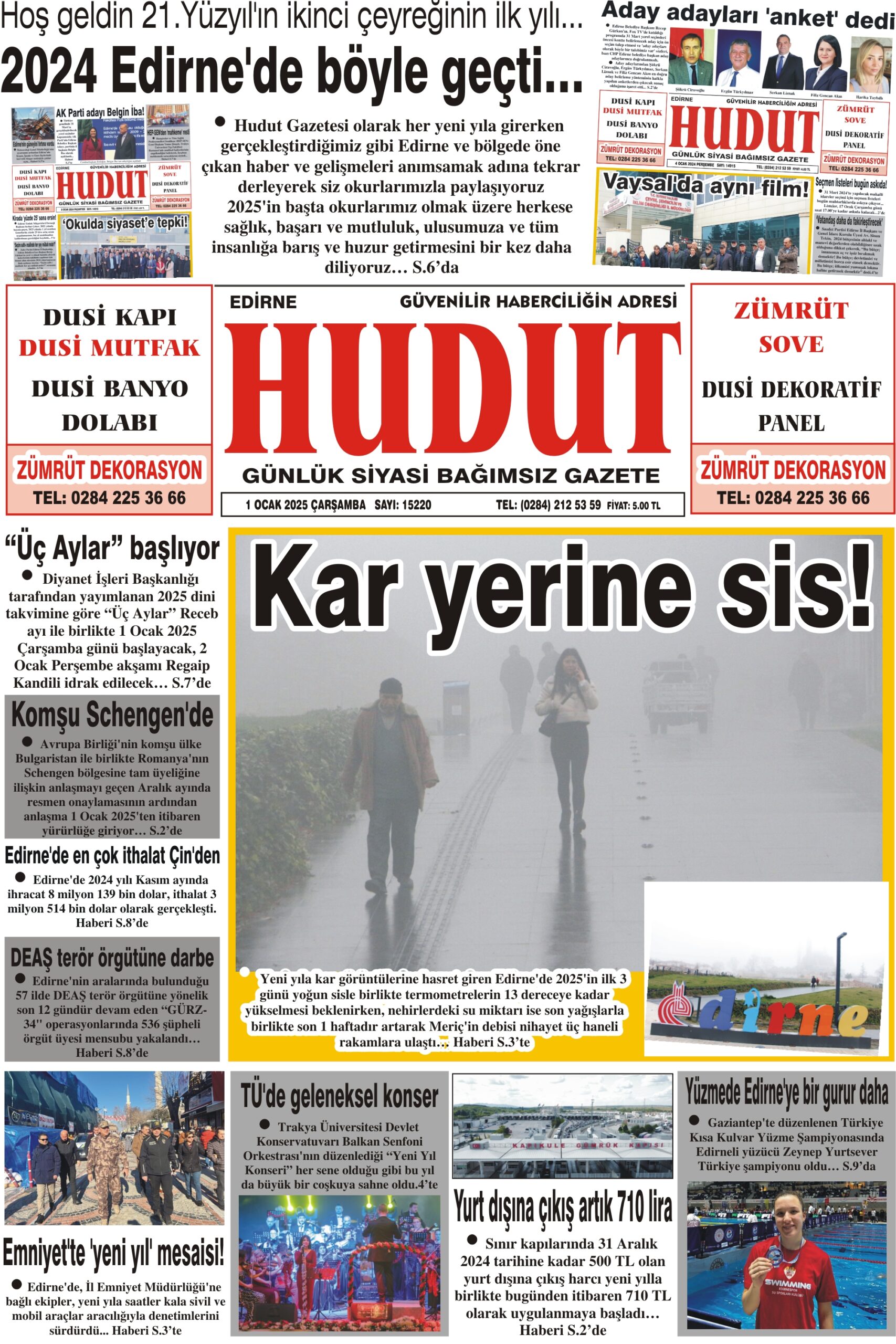 26 Aralık 2024 Perşembe Hudut Gazetesi