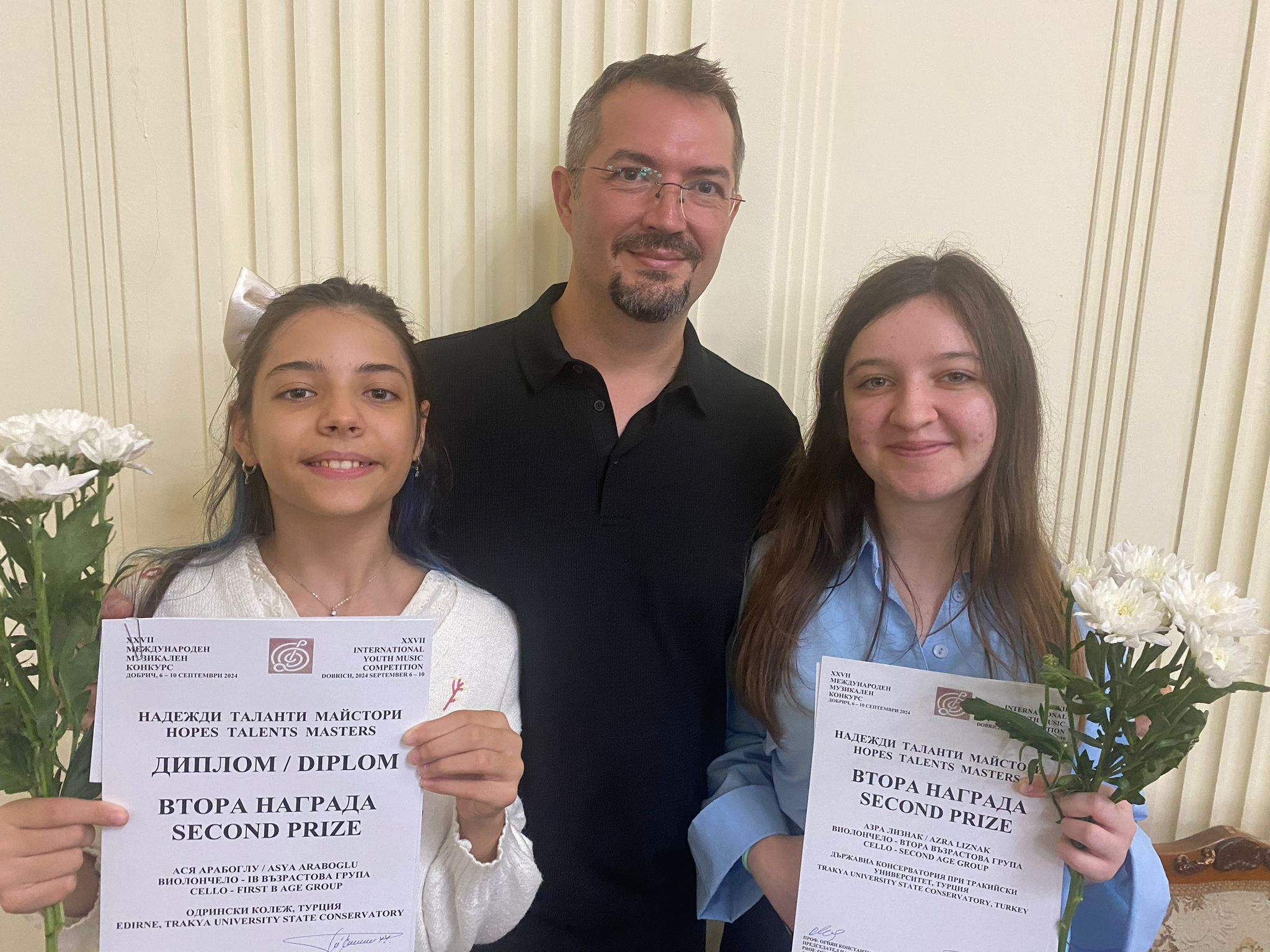 Trakya Üniversitesi Devlet Konservatuvarı Yaylı Çalgılar Anasanat Dalı Viyolonsel Öğretim Üyesi Doç. Tanju Araboğlu’nun öğrencileri, bu yıl 27. si Bulgaristan’ın Dobrich şehrinde düzenlenen Uluslararası Müzik Yarışması Hopes, Talents, Masters’ta büyük başarı elde etti.