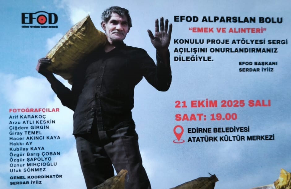 Edirne Fotoğraf Sanatı Derneği (EFOD), fotoğraf sanatçısı Alparslan Bolu öncülüğünde hazırlanan “Emek ve Alınteri” adlı proje atölyesi sergisini yarın sanatseverlerle buluşturacak.