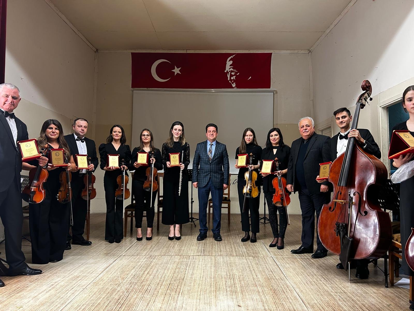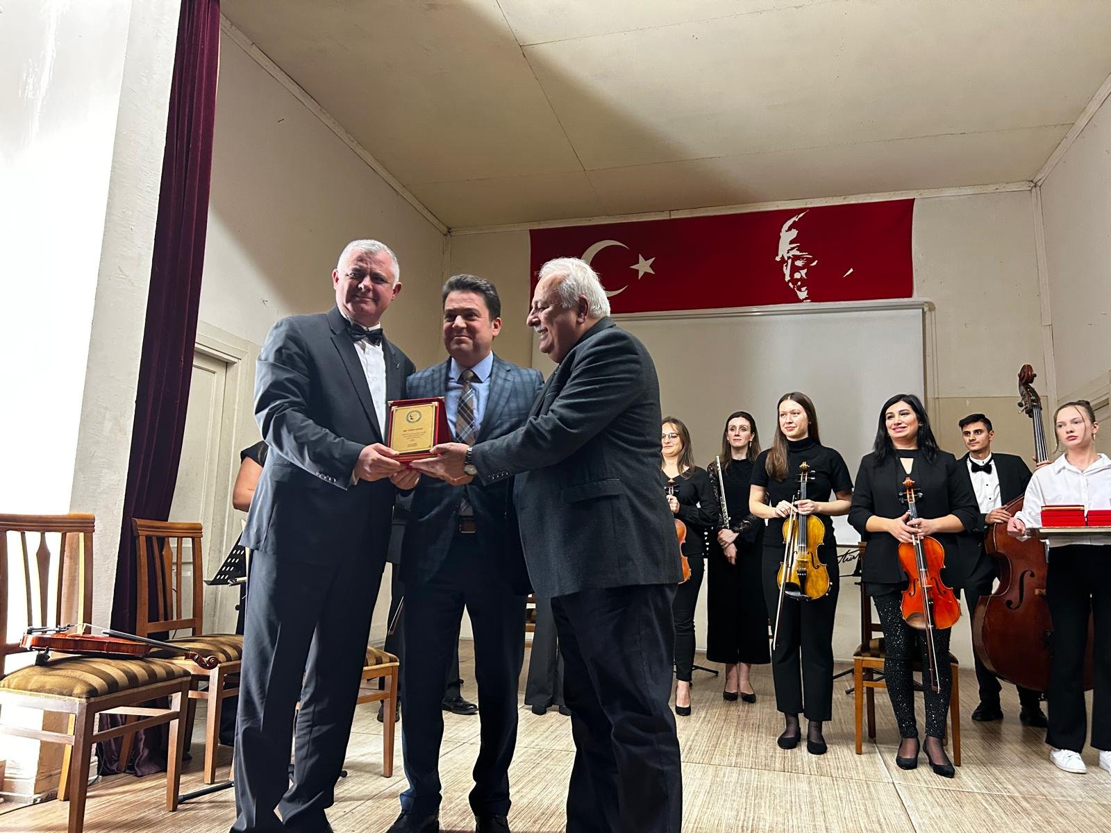 Gecenin sonunda, Oda Müziği konserini düzenleyen müzisyenlere ve Müzik Öğretmeni Erdem Günay’a teşekkür plaketlerini gecenin onur konuğu Prof. Dr. AminbaySapayev takdim etti.