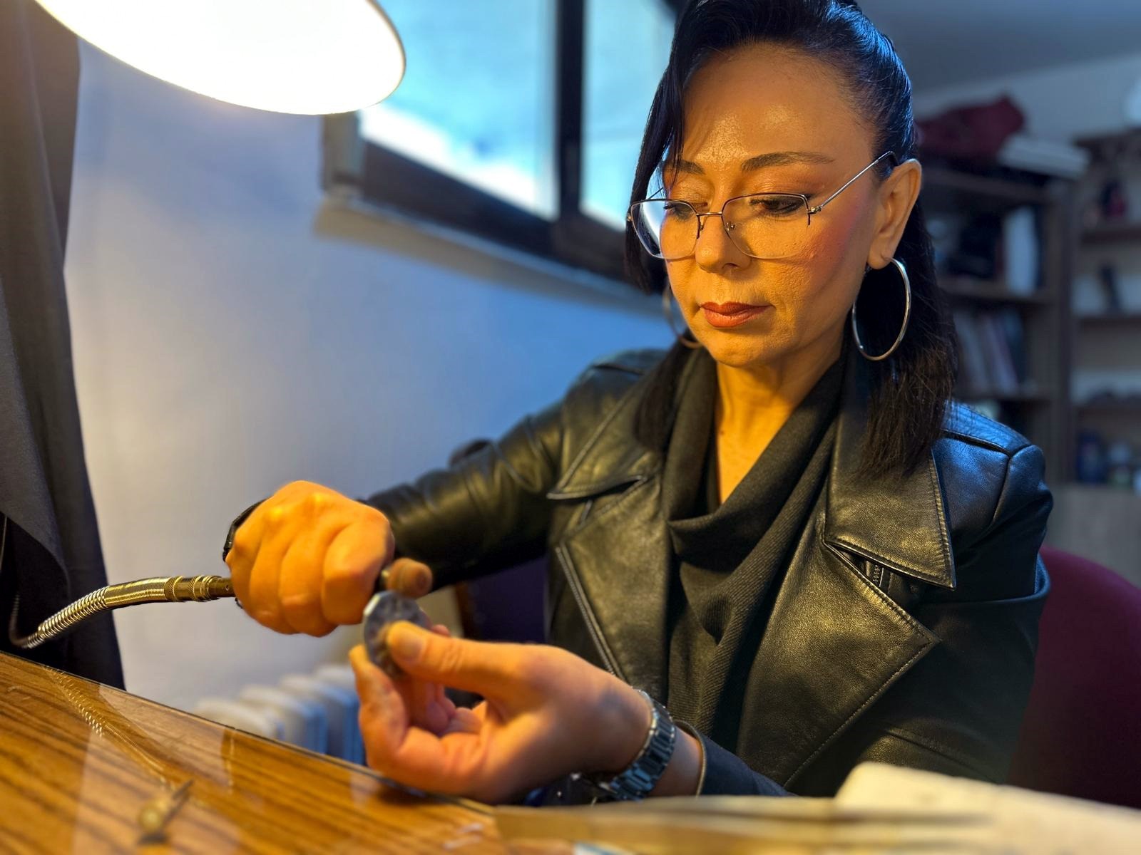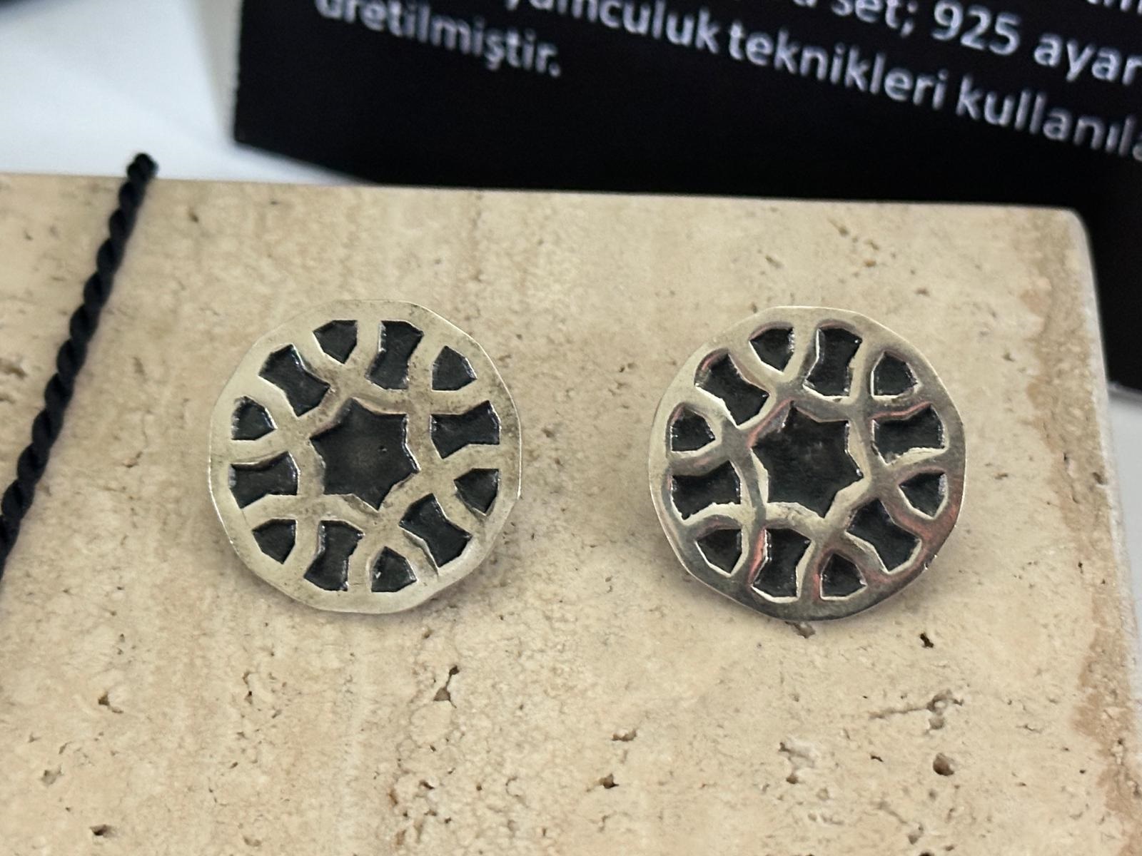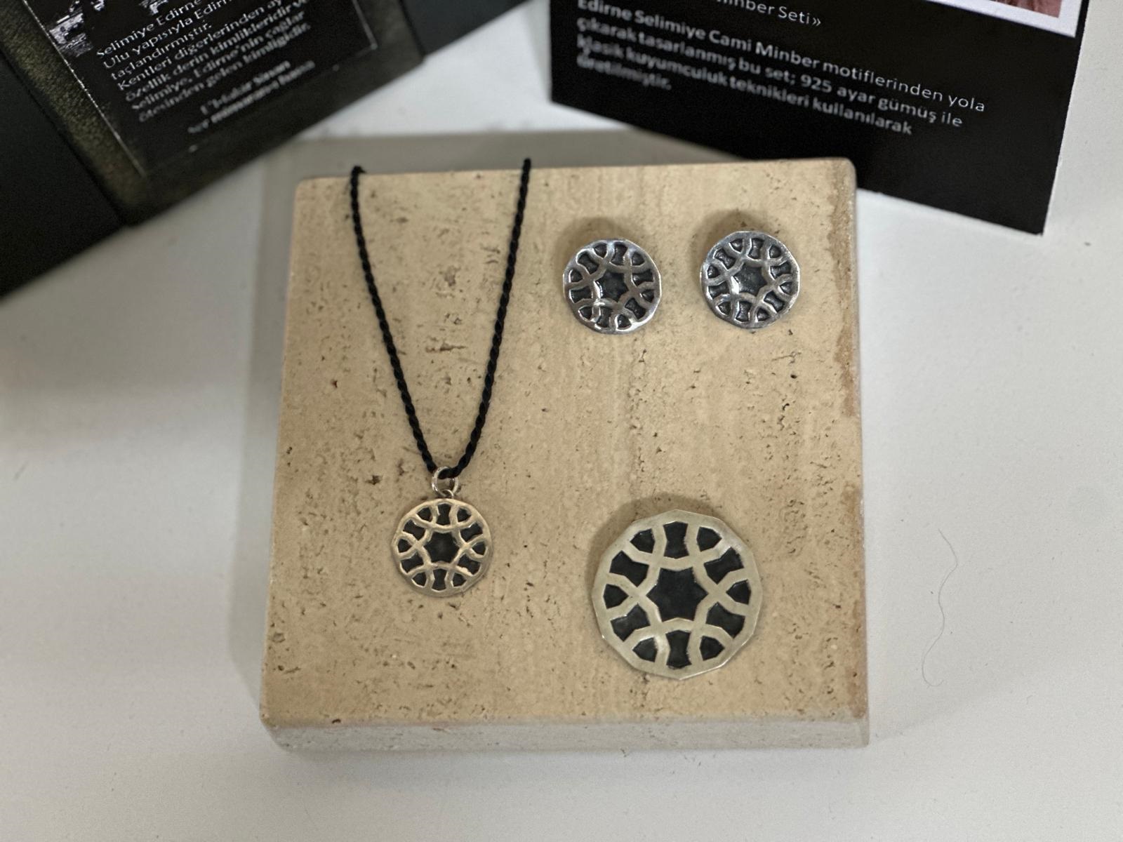 Edirne’de Trakya Üniversitesi’nde (TÜ) Öğretim Görevlisi Aybike Kınalı, Selimiye Camisi minberindeki motifleri, ince işçilikle çalıştığı 925 ayar gümüşten takı setine işledi.