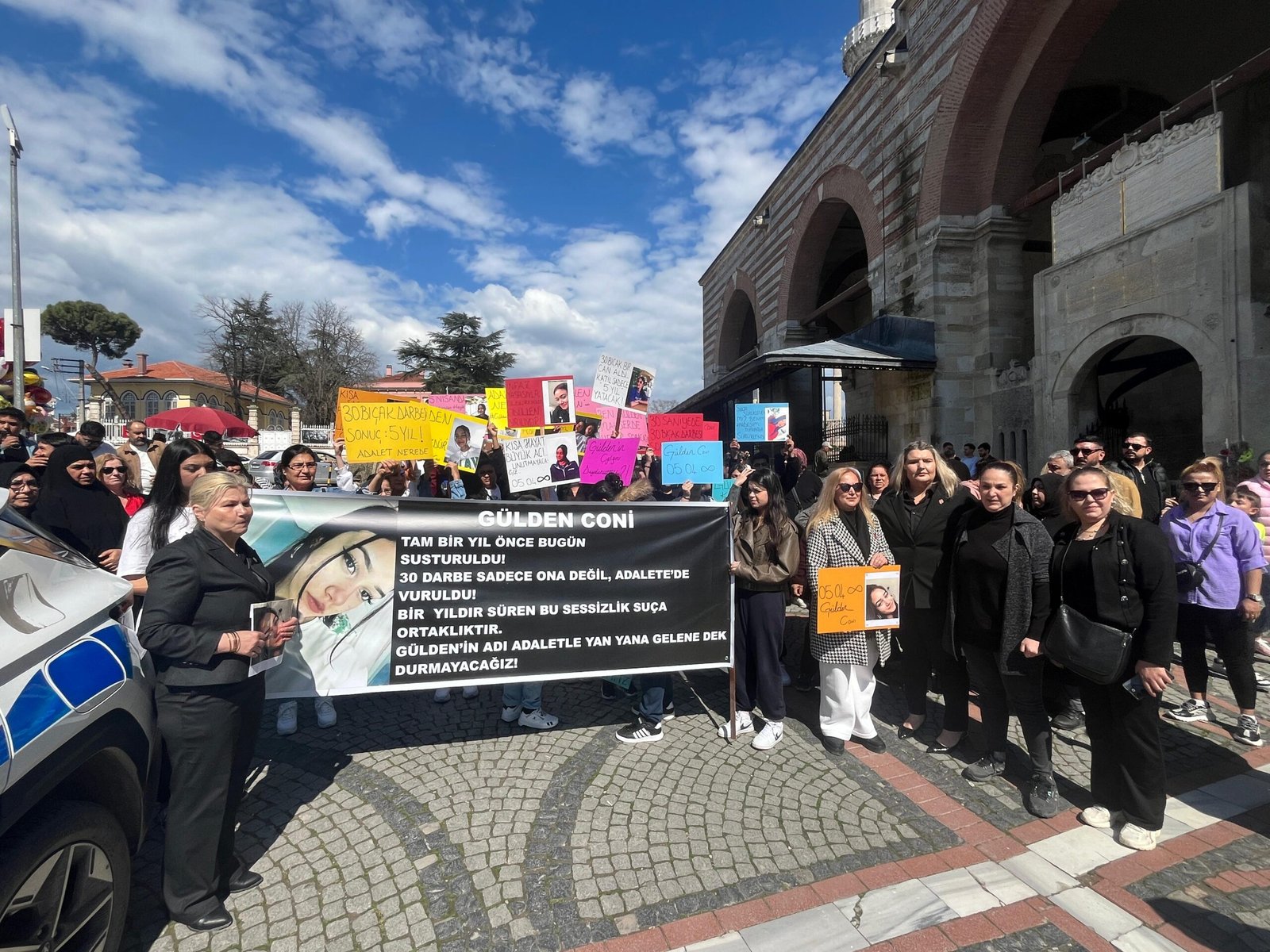 Coni ailesi, Gülden’in ölüm yıldönümünde yürüyüş ve basın açıklaması düzenlendi. Kent merkezindeki Eski Cami’den başlayıp Saraçlar Caddesi’nde sona eren yürüyüşte, aile ve yakınları sloganlar attı. Yürüyüşe Edirne Cumhuriyetin Özgür Kadınları Derneği ile CHP il ve ilçe örgütü de destek verdi. CHP İl Başkanı Yücel Balkanlı ve Merkez İlçe Başkanı Volkan Akgüngör, CHP İl Gençlik Kolları Başkanı Özgür Hata da yürüyüşte ailenin yanında yer aldı. Aile adına basın açıklamasını okuyan Gülden Coni’nin ablası Nurhan Alüzrek, kardeşinin vahşete kurban gittiğini belirterek, “Gülden’in tek yaptığı şey, yaşamaya devam etmekti ama karşısına çıkan bir insan değil, bir vahşetti. Kardeşim Gülden, 30 bıçak darbesiyle katledildi ve ben bunu özellikle tekrar ediyorum. Çünkü bu bir sayı değil, bu bir vahşetin boyutudur. 30 darbe bir insanı öldürmek için değil, bir hayatı parçalamak içindir. Bu sadece Gülden’in bedenine değil, bizim hayatımıza da indirilen 30 ayrı darbedir. Her biri bizim içimizde hala kanayan 30 ayrı yaradır. O gün sadece bir insan ölmedi. O gün bir ev sustu, bir anne çöktü, bir baba yarım kaldı. O gün bizim hayatımız durdu. Ama dünya dönmeye devam etti” dedi.