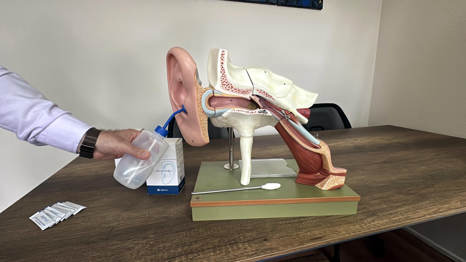 Ülke genelinde yaklaşık 10 milyon kişinin kulak kirine bağlı rahatsızlıklar nedeniyle doktora başvurduğunu dile getiren Demir, “Bilimsel adıyla buşon veya serumen, halk tabiriyleyse kulak kiri dediğimiz temel bir halk sağlığı sorunu rahatsızlığı vardır. Ülkemizde yaklaşık 10 milyon birey bu rahatsızlık nedeniyle kulak burun boğaz hekimlerine başvurmaktadırlar. Bu da ciddi bir polikliniklerde yoğunluk ve hekimlerin iş yükünü arttıracak bir rahatsızlık olarak karşımıza çıkmaktadır. Kulak kiri rahatsızlığı sosyoekonomik ve her yaş grubunda homojen olarak görülen temel bir halk sağlığı sorunudur. Çevresel etmenler, epital doku artıkları, vücut salgılarının bir arada birleşerek katılaşması sonucunda kulak içerisinde olan kitlesel bir yapıdır. Bu kitle kulağımızda biriktiği sürece duyma yani işitme yetimizde azalmaya neden oluyor. Bu da temel bir gündelik hayatın aksamasına neden oluyor” dedi.