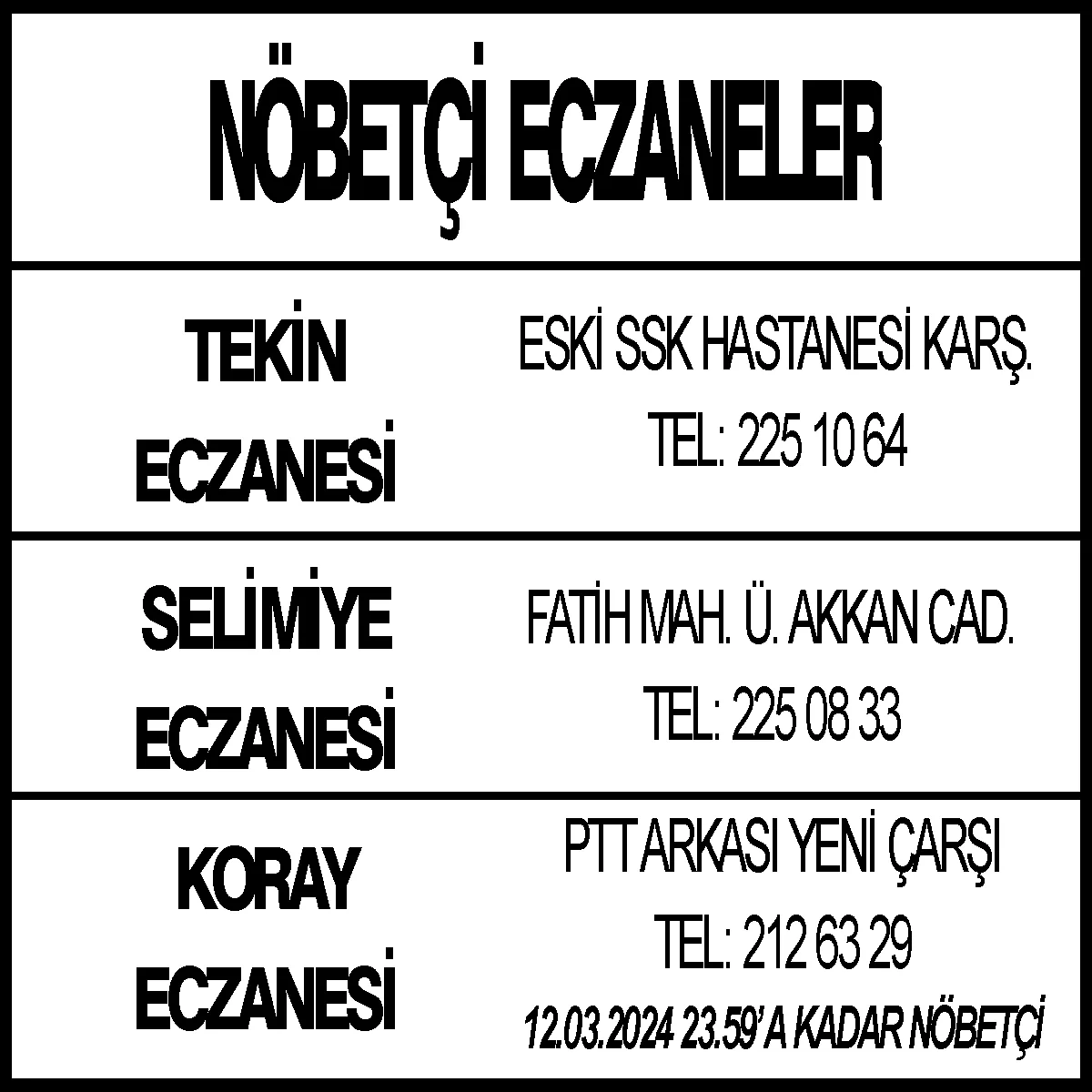 Nöbetçi Eczaneler