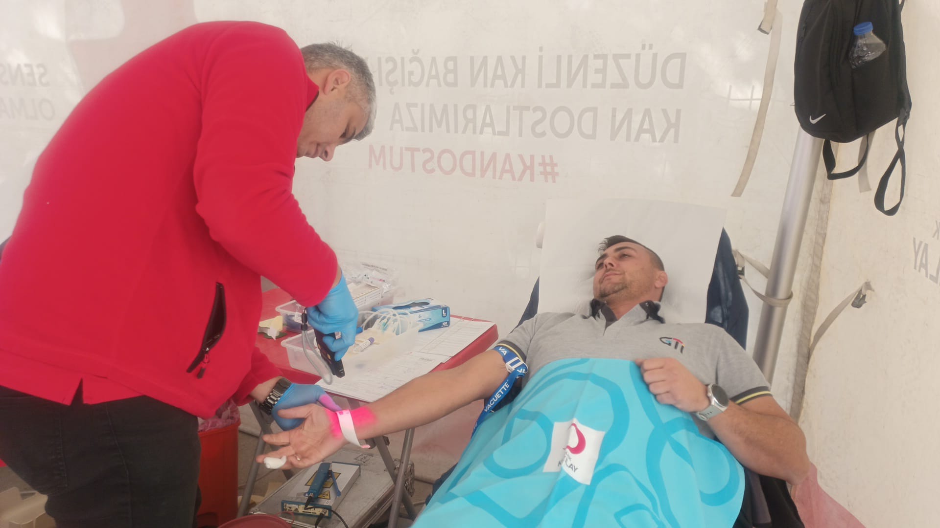 Kızılay Kan Merkezi gezici ekibi kan bağışı çadırını hiç ara vermeden kurmayı sürdürüyor. Ekibin son durağı Lala Şahin Paşa İlk/Ortaokulu bahçesi oldu.