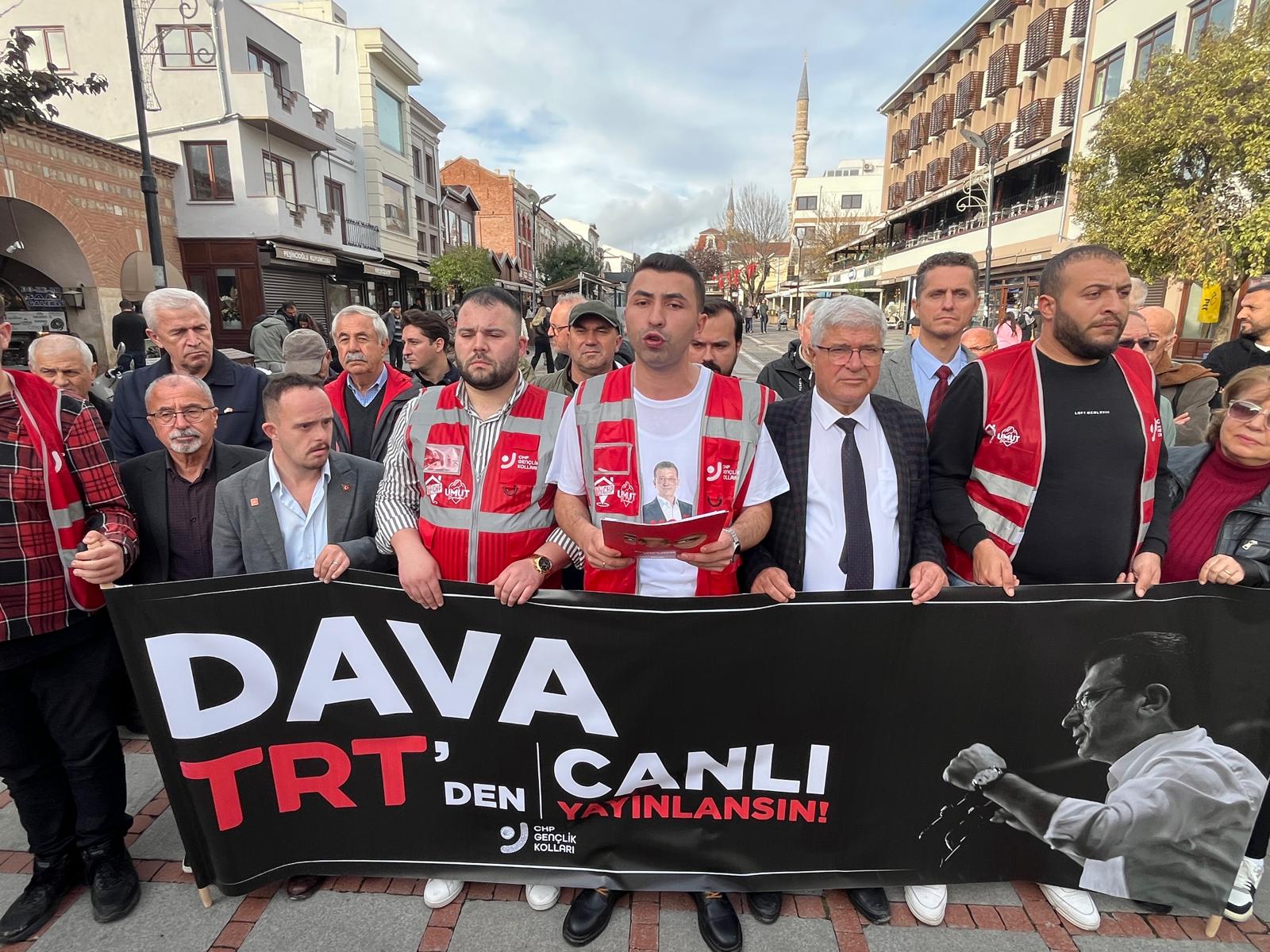 CHP Edirne Gençlik Kolları il yönetimi, tutuklu İBB Başkanı Ekrem İmamoğlu’nun yargılanmasının TRT’den canlı yayınlanmasına yönelik taleplerini, gerçekleştirdikleri basın açıklamasıyla yineledi.