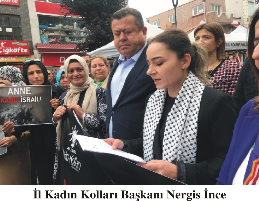 Eylemde konuşan AK Parti Edirne İl Kadın Kolları Başkanı Nergis İnce, yaklaşan Anneler Günü’nün annesini kaybedenlerin ağır imtihanı olduğun söyledi. İnce; “Pazar günü anneler günü. Günlerdir her yerde tatlı bir telaş yaşanıyor. Anneler günü öksüzlerin ve evladını kaybeden annelerin de ağır imtihanı. Fakat bir yandan da dünyanın orta yerinde, yanı başımızda Filistin’de, Gazze’de, Refah’ta yaşanan soykırım nedeniyle anne olmak hiç bu kadar zor olmamıştı. Bir kadın, bir anne olarak çok net ifade ediyorum: her can tek, her can biricik ve bir cana kıyan tüm insanlığa kıymış gibidir. Filistin Sağlık Bakanlığının 5 Mayıs’ta yaptığı açıklamaya göre; İsrail’in 7 Ekim’den bu yana Gazze Şeridi’ne düzenlediği saldırılarda 34 bin 683 kişi öldü, 78 bin 18 kişi yaralandı. Çocuklar, annelerinin gözü önünde eriyor. Cumhurbaşkanımız Recep Tayyip Erdoğan’ın Birleşmiş Milletler ve pek çok uluslararası platformda haykırdığı gibi ‘savaşın da bir ahlakı, hukuku vardır. Sivillerin hedef alındığı saldırıyı haklı gösterecek tek bir neden dahi olamaz.’ Sayın Cumhurbaşkanımız ve Hanımefendi’nin çocuk ve kadınlar başta olmak üzere sivilleri korumak için yaptığı pek çok girişim tüm dünyaya örnek oluyor. Hamas’ın ateşkes masasına oturmayı kabul etmesi gelecek için bir umuttur. Ancak çağrıya rağmen özellikle Gazze ve Refah’ta artarak devam eden saldırılar İsrail’in niyetini ortaya koymuştur. Biz anneler olarak yine de İsrail’e bir kez daha çağrıda bulunuyoruz; ateşkes için bir adım bekliyoruz” şeklinde konuştu.